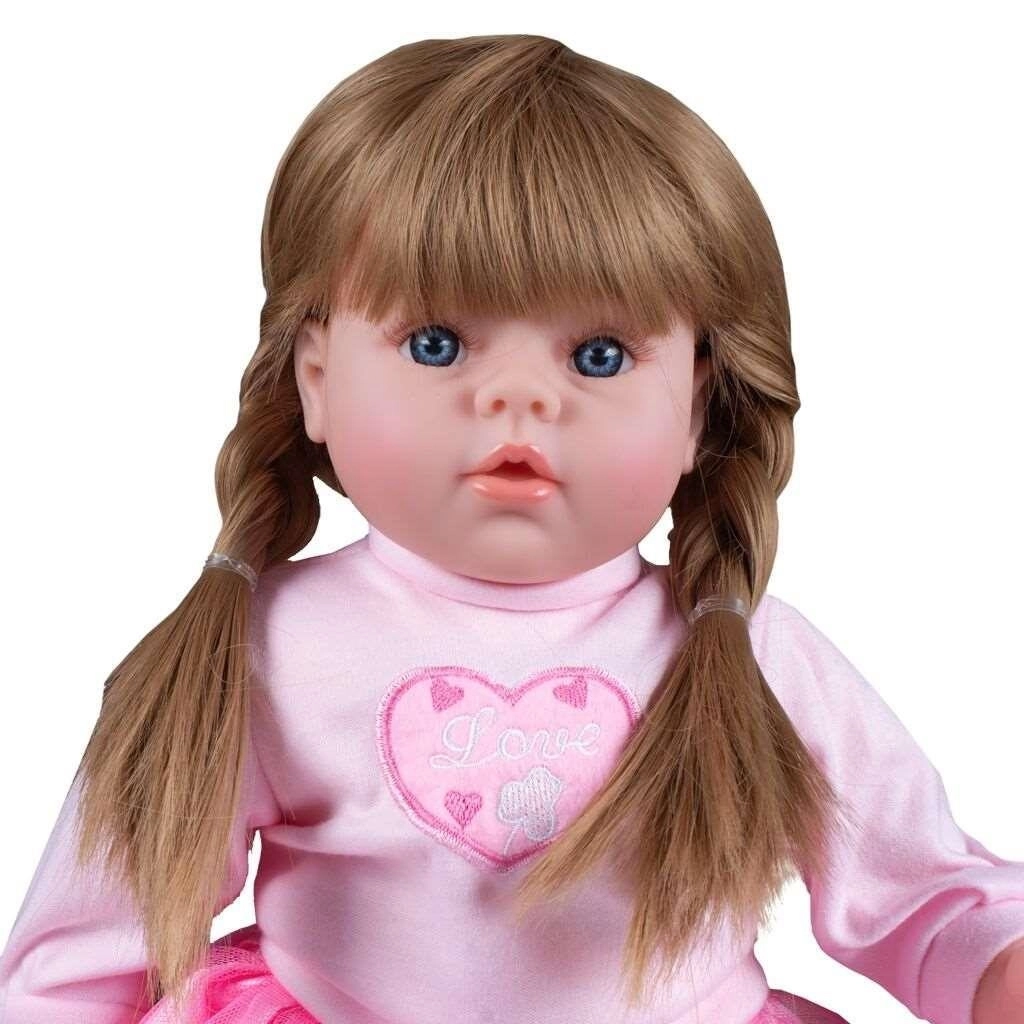 La poupée PlayTo Tina de 46 cm est une merveilleuse compagne pour jouer aux parents. Les détails réalistes du visage, les cheveux bruns tressés et les tenues douces dans des tons roses invitent à un jeu tendre et aux soins. Grâce à son corps moelleux, la poupée est agréable à câliner, tandis que les extrémités et la tête en caoutchouc assurent la durabilité au quotidien.
