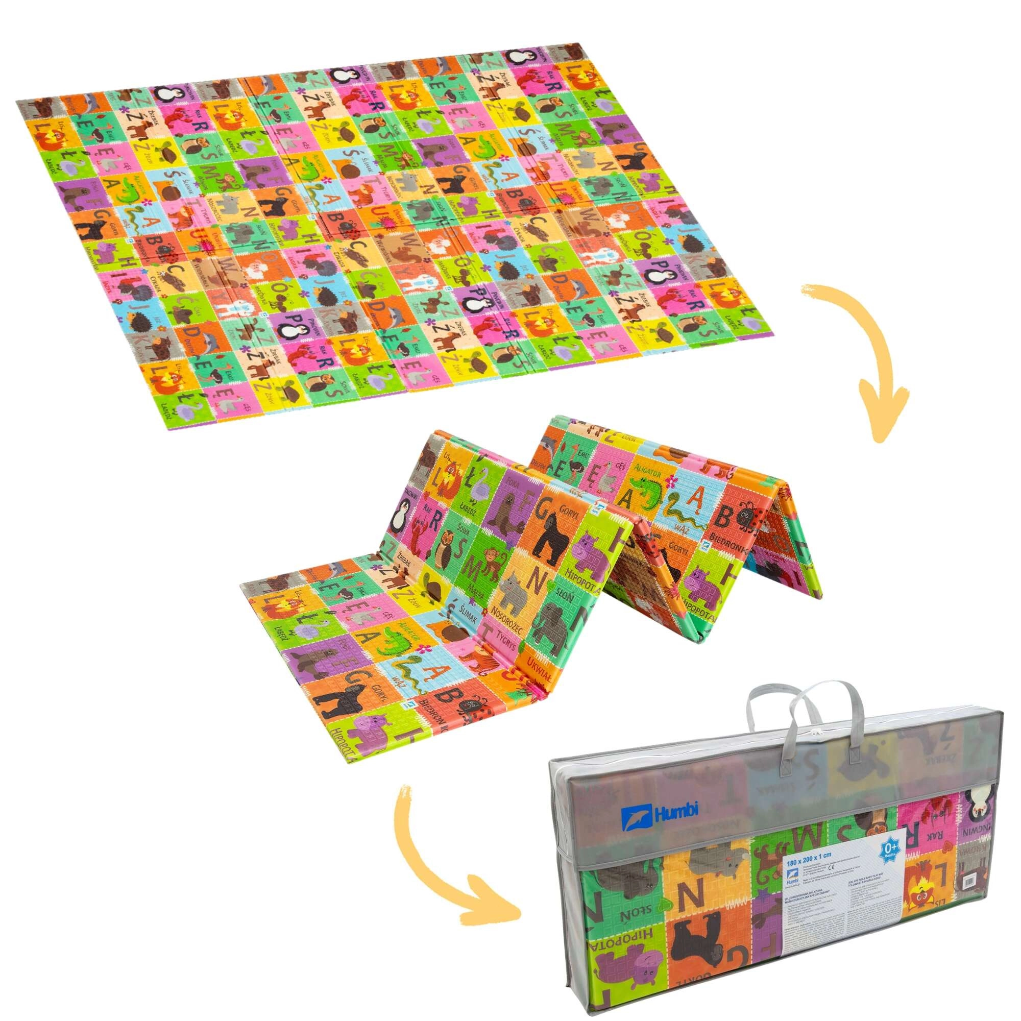 Ses deux faces ludiques favorisent le développement de l’enfant : un alphabet coloré avec des animaux et un motif de village avec petites routes pour faire rouler les voitures et explorer. Le tapis se plie en quelques secondes, se transporte dans le sac inclus et, grâce à sa surface imperméable, il suffit de l’essuyer avec un chiffon humide.