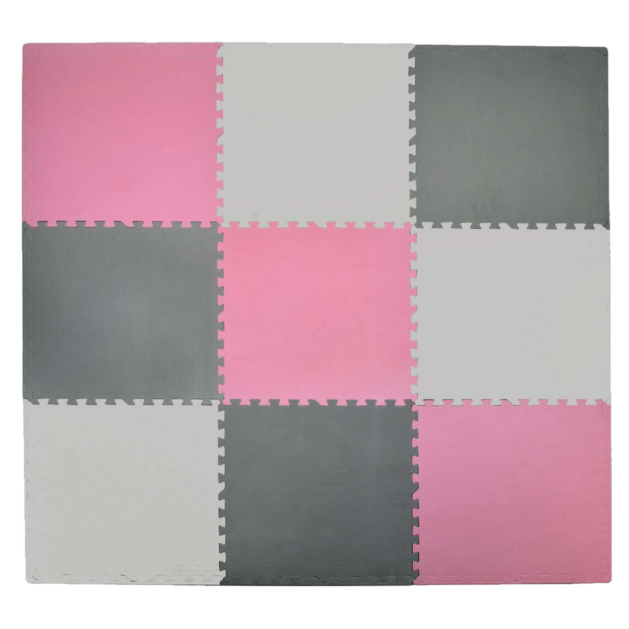 Les carrés modulaires de 60 × 60 cm avec bordures s’assemblent comme un puzzle – vous adaptez facilement la taille et la forme du tapis et pouvez relier plusieurs sets pour former une grande surface. La surface imperméable et hygiénique se nettoie rapidement avec un chiffon humide, et la texture antidérapante favorise un rampement sûr ainsi que les premiers pas.