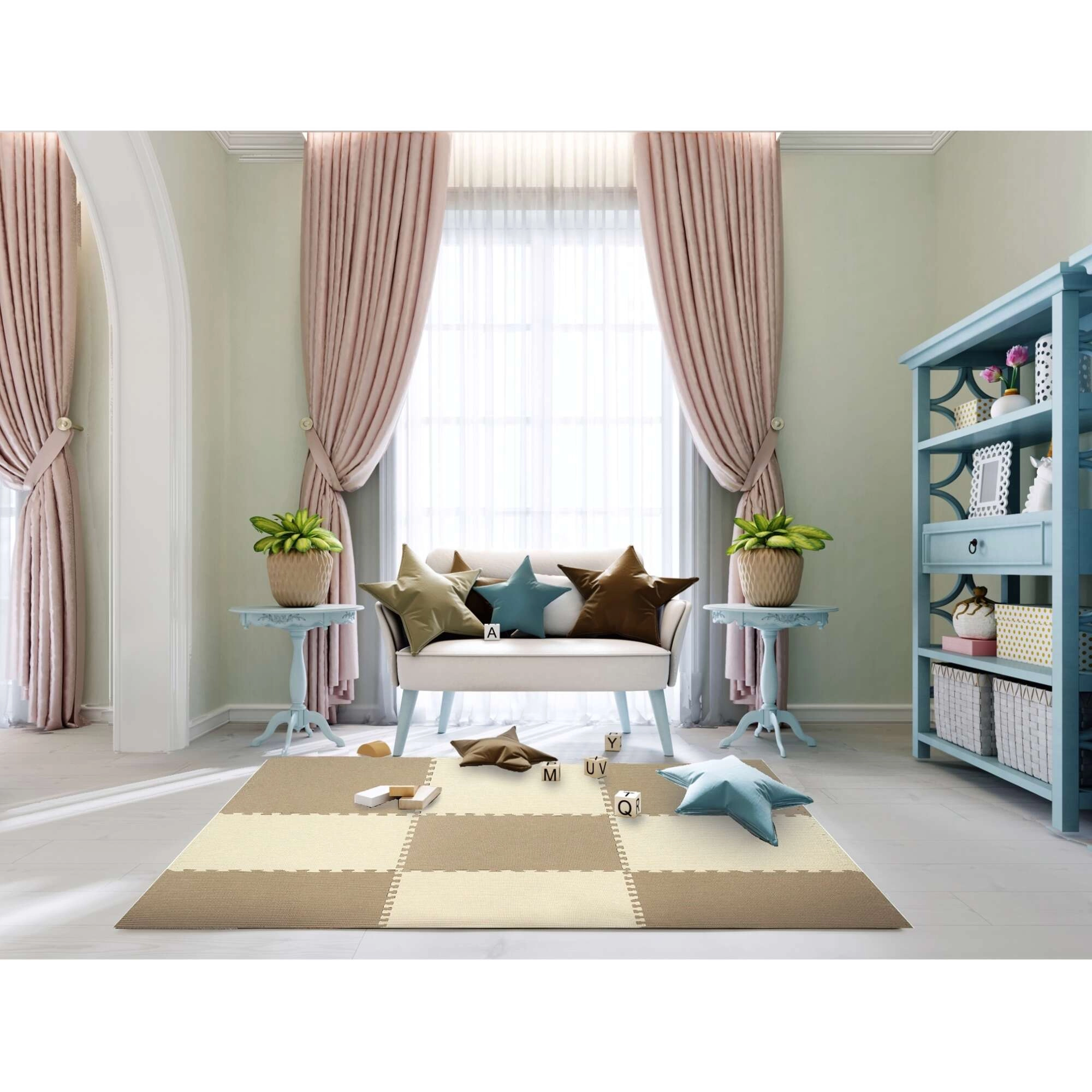 Les puzzles en mousse HUMBI en mousse EVA de qualité offrent aux enfants un espace sûr pour les premiers retournements, le rampement et les premiers pas. Grâce à leur épaisseur de 1 cm, ils amortissent parfaitement les chutes et isolent du froid des carrelages, parquets et stratifiés. Le matériau est imperméable, ce qui rend le tapis facile à entretenir – il suffit d’essuyer avec un chiffon humide. Les tons discrets crème et beige ne perturbent pas la déco et complètent un intérieur moderne.