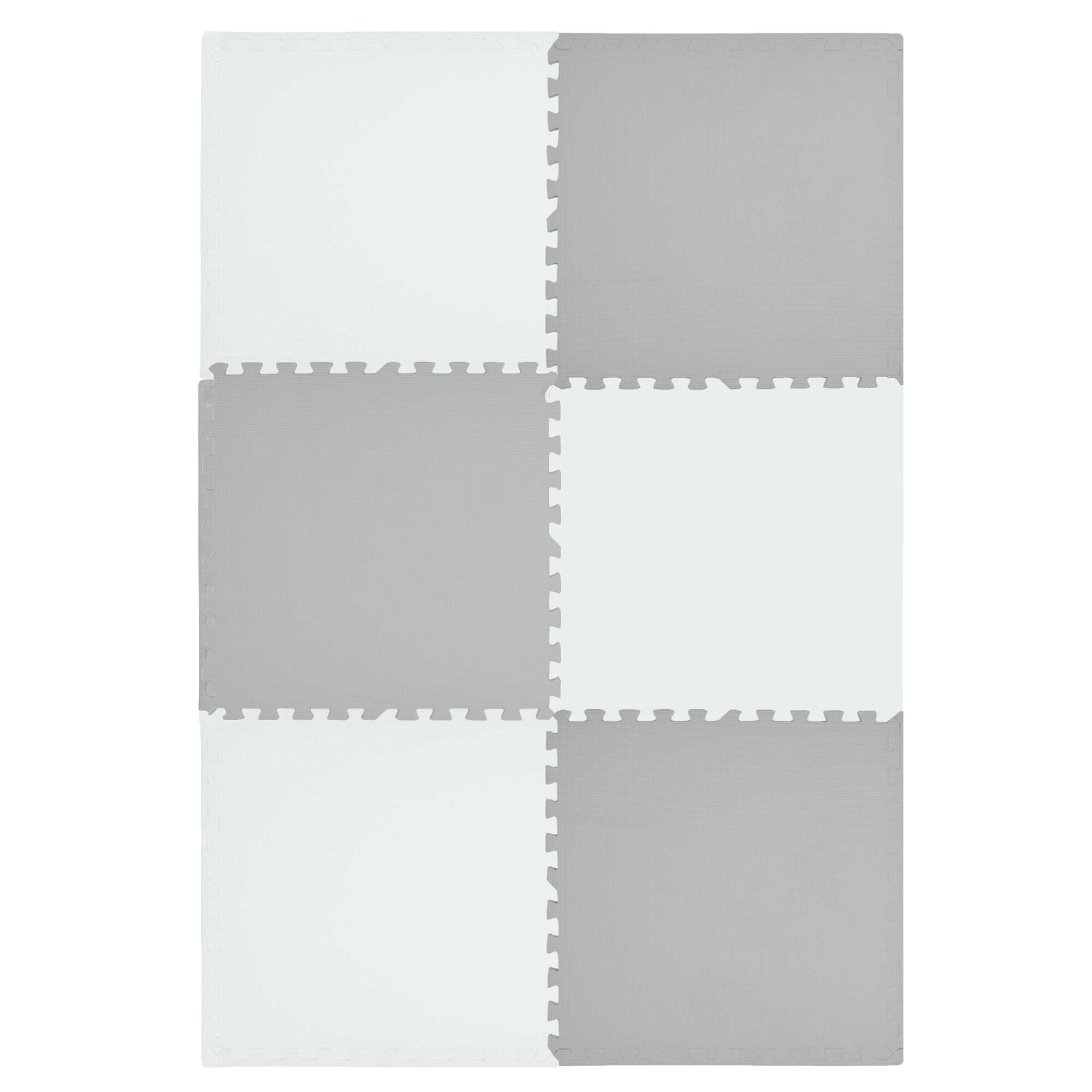 Sol en mousse élégant dans des tons neutres blanc/gris, assorti à tout intérieur et visuellement discret. Les dalles se montent et se démontent rapidement grâce aux bords puzzle, ce qui permet d’adapter facilement la taille et la forme à l’espace. Le matériau EVA est sans phtalates, formamide, BPA et PVC, conforme à la norme EN 71 et aux exigences REACH, et porte le marquage CE.
