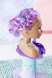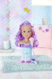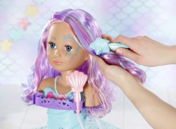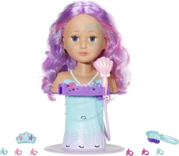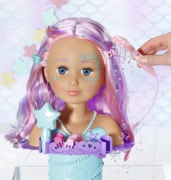 Transformez le bain en un salon de beauté magique avec la tête à coiffer BABY born Sister au design de sirène. Grâce aux ventouses, elle se fixe facilement sur le bord de la baignoire, où elle ravira avec de longues mèches de qualité pour des coiffures infinies, une douche électronique avec pompe et de nombreux accessoires. Elle stimule la créativité, la motricité fine et offre un divertissement durable pour laver, coiffer et décorer les cheveux.