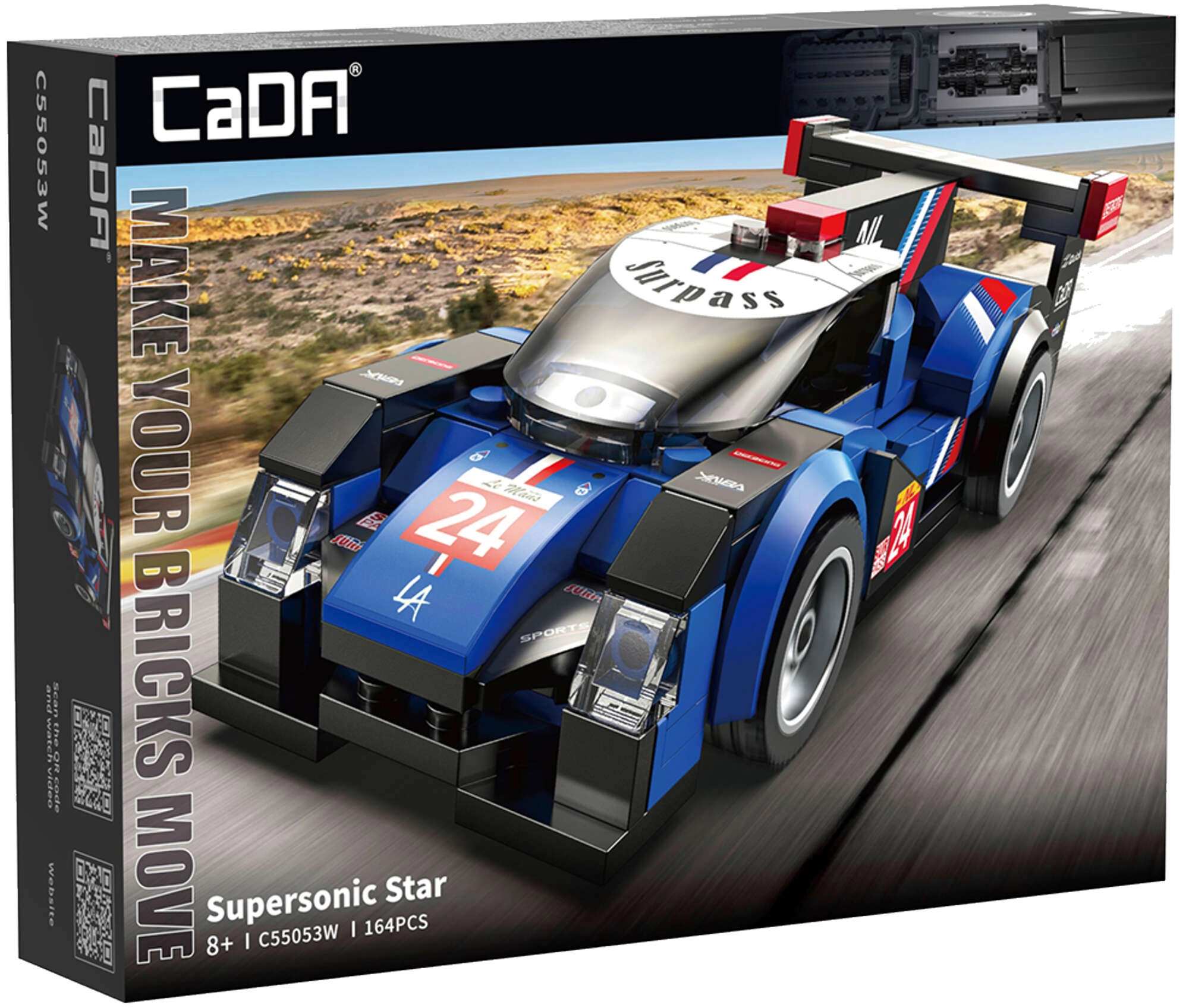 La boîte de construction CaDA Supersonic Star ravira les petits comme les grands constructeurs. La carrosserie bleue avec des éléments blancs, rouges et noirs a un rendu réaliste et souligne le look sportif. Grâce à des instructions claires, même les débutants peuvent assembler le modèle pas à pas.