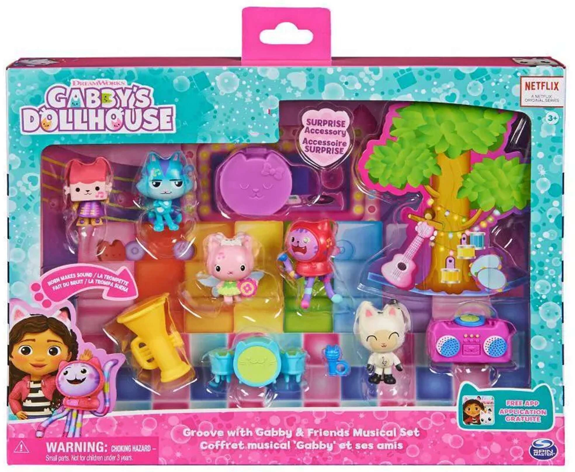 Le set musical GABBY'S DOLLHOUSE réunit les personnages favoris et des accessoires musicaux inspirés de la série La Maison de poupée de Gabby. Les enfants peuvent jouer en groupe, composer leurs propres chansons et revivre les scènes de la série – le tout avec des accessoires sûrs et colorés, parfaitement adaptés aux petites mains.