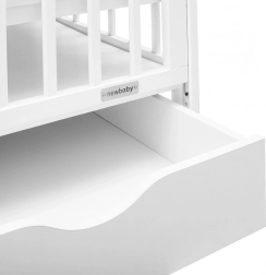 La structure en bois de pin 100 % avec une laque à base d’eau est respectueuse des enfants et de l’environnement. Le tiroir intégré sur glissières à billes ne touche pas le sol, peut être entièrement tiré puis remis en place facilement – idéal pour ranger la literie, les couches et d’autres indispensables.