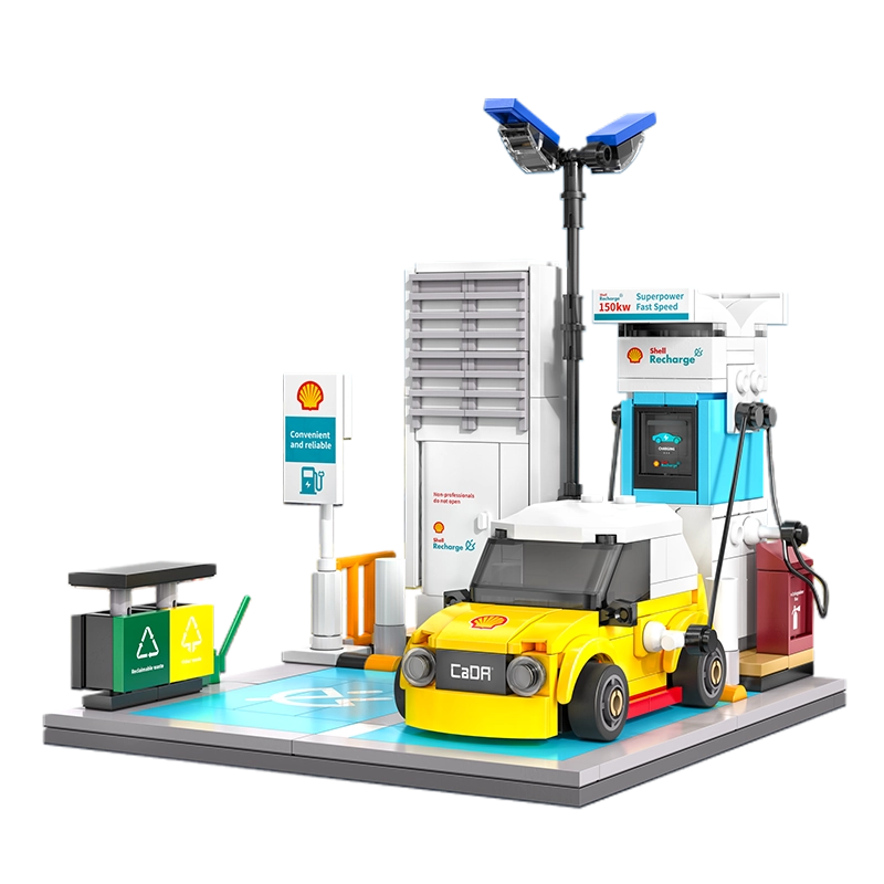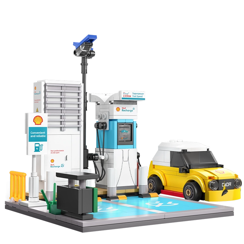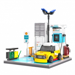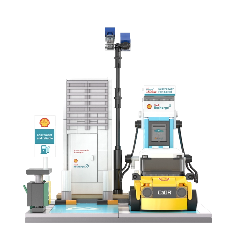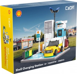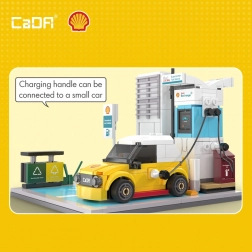 Construisez votre propre station de recharge SHELL avec une voiture jaune compacte à partir de briques de qualité CaDA. Avec 308 pièces, créez une scène réaliste avec un câble de recharge, un marquage de place de parking et des accessoires détaillés comme une poubelle et des lampadaires – idéal pour le jeu créatif comme pour une décoration stylée.