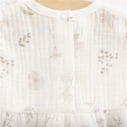 La fermeture par bouton-pression au dos facilite l’habillage, tandis que la mousseline de coton 100 % est toute douce, résistante et devient encore plus souple à chaque lavage. Un excellent choix pour un usage quotidien et les sorties estivales.