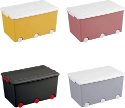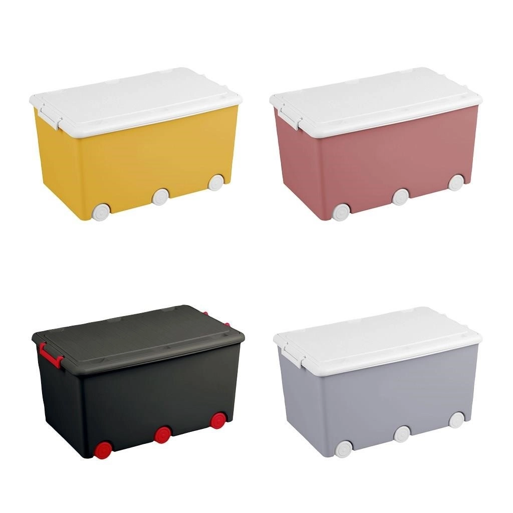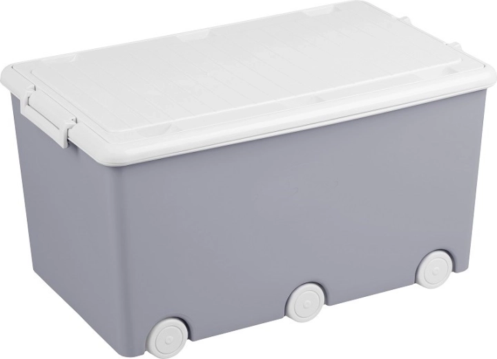 Mettez de l’ordre dans la chambre d’enfant rapidement et facilement avec la spacieuse boîte à jouets sur roulettes TEGA de couleur grise. Elle offre un volume de 60 l, des dimensions 57 × 36 × 29 cm et 6 roulettes pour un déplacement aisé. Grâce à la fermeture latérale à 2 boutons-pression, les jouets sont rangés en toute sécurité et la possibilité de superposition permet de gagner de la place. Fabriquée en plastique certifié de haute qualité pour une longue durée de vie.