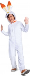 Cette combinaison blanche intégrale à capuche est inspirée du personnage Scorbunny de l’univers POKEMON. Grâce au polyester doux, à la fermeture pratique à l’avant et à des détails comme les longues oreilles et la queue, ce costume est idéal pour le carnaval, les fêtes d’école et les déguisements du quotidien à la maison.