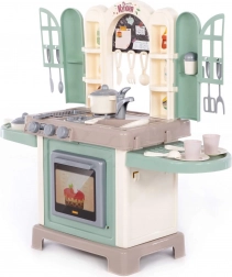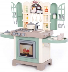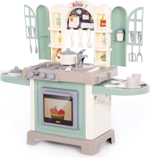 La cuisine pour enfants Natali en vert est un set de jeu réaliste avec un large plan de travail, une cuisinière, un four et un évier. Elle inclut de nombreux accessoires pour un jeu créatif et le développement des compétences. Grâce aux portes avec fenêtres, aux étagères et à l’espace pour écrire des recettes, elle ressemble à une vraie cuisine. Favorise l’imagination, la communication et la motricité fine.