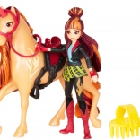 Cinder se distingue par sa crinière et sa queue aux teintes flamboyantes, ainsi que par sa selle détaillée et ses rênes assurant une assise stable à la cavalière. Une brosse est également incluse pour coiffer la crinière et la queue, ajoutant encore plus de fantaisie au jeu.