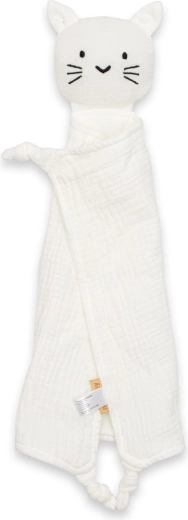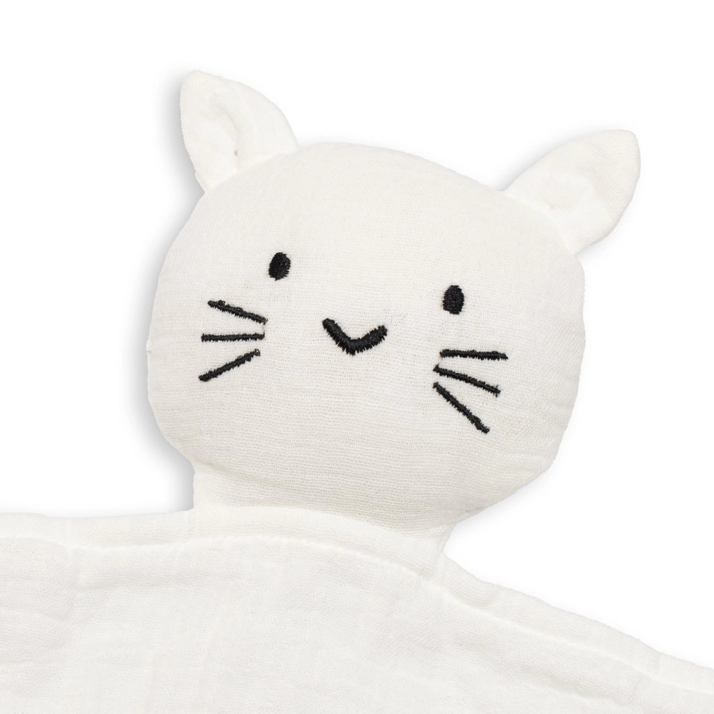 Le doudou en mousseline NEW BABY Cat en blanc est léger, respirant et doux au toucher. Idéal pour câliner, apaiser et comme compagnon de voyage. Le coton biologique est délicat pour la peau sensible des enfants et aide bébé à se sentir en sécurité.