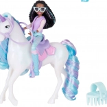 Ce set détaillé, inspiré de la série à succès Unicorn Academy, apporte aux enfants un univers de fantaisie et d’amitié. Layla porte une tenue iconique aux couleurs assorties et, grâce à ses articulations, elle s’installe facilement en selle. La licorne Glacier a une crinière multicolore et abondante, une corne décorée et une posture stable pour un jeu fluide.