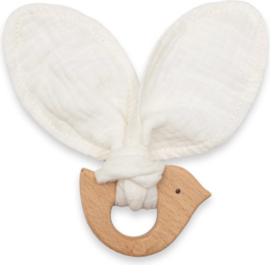 L’anneau de dentition NEW BABY Bird white associe du bois de hêtre naturel et un tissu en mousseline 100 % coton biologique. La partie en bois plus ferme aide à masser les gencives et à soulager les tensions, tandis que la mousseline douce offre un toucher moelleux et permet d’essuyer délicatement la salive.