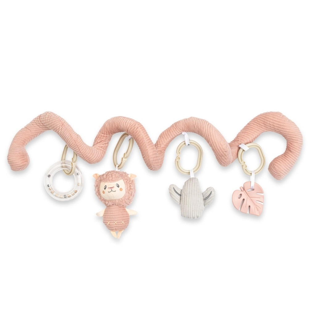 Adorable jouet en spirale au motif lama de la marque NEW BABY offrant au bébé une diversion interactive à la maison comme en déplacement. Grâce à sa forme spiralée ingénieuse, il se fixe facilement sur le lit bébé, la poussette ou le siège auto. Il comprend un sifflet, un hochet et un anneau de dentition pour stimuler les sens et apaiser lors des poussées dentaires. Fabriqué avec des matériaux de qualité et sûrs.