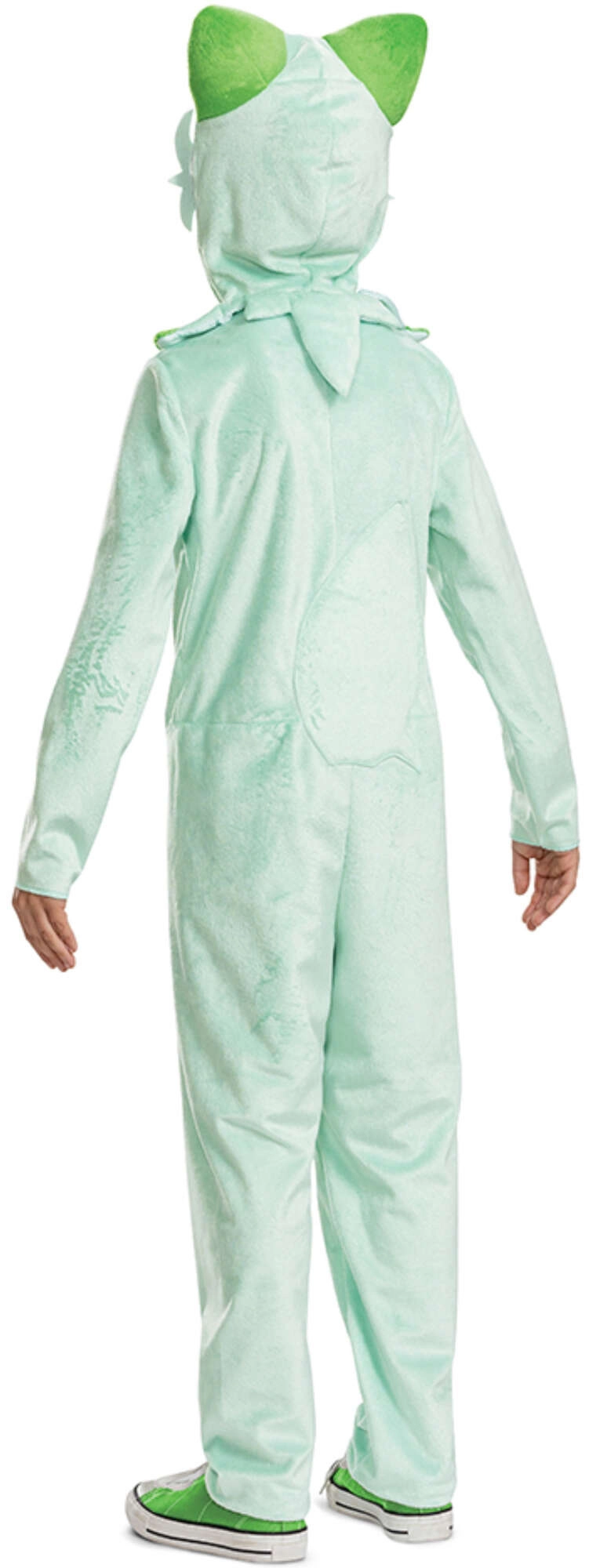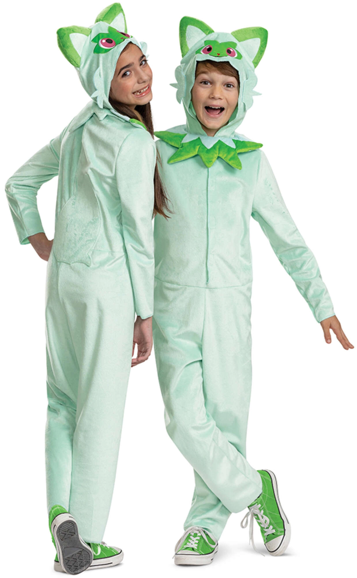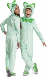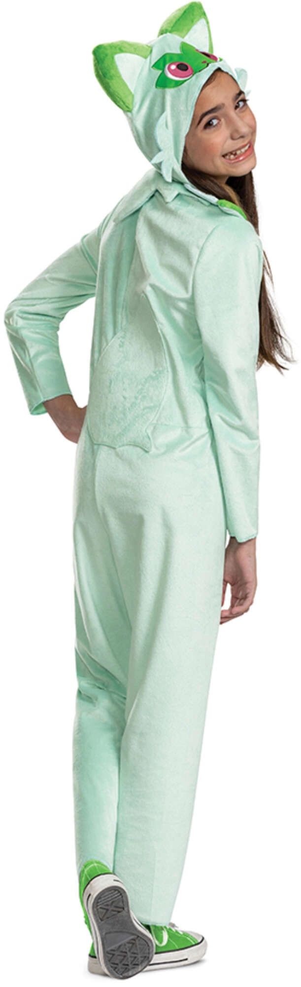 Adorable costume pour enfants POKEMON Sprigatito qui transforme les petits fans en leur Pokémon feuillu préféré. Doux combinaison une pièce à capuche, avec fermeture éclair frontale et oreilles proéminentes, idéale pour le carnaval, Halloween et le jeu à la maison. Le 100 % polyester léger et agréable assure confort et entretien facile.
