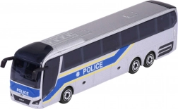 Modèle réduit en métal du MAN Lion's City C en version police, pour le plaisir des petits et des grands collectionneurs. Finition grise avec bande bleue, carrosserie métallique de qualité avec détails en plastique et roues libres orientables pour une conduite fluide sur surface plane. Qualité éprouvée de la marque Majorette, série Majorette Trailer.