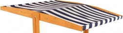 - Style élégant : toile rayée bleu et blanc, profils en bois lisses.