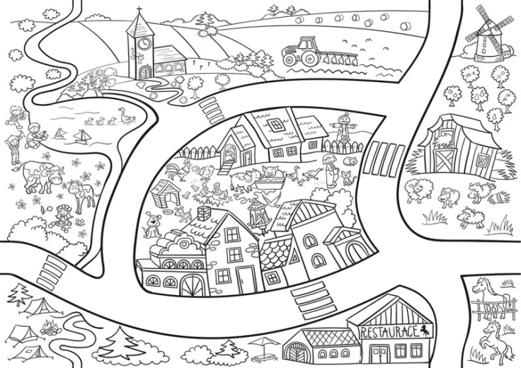 Coloriez les détails des maisonnettes, des jardins et des chemins, et développez l’imagination ainsi que la motricité fine. Si vous achetez les six modèles de cette série, vous pouvez facilement les assembler en une grande image panoramique reliée par un motif de route – une superbe décoration pour une chambre d’enfant ou une salle de classe.