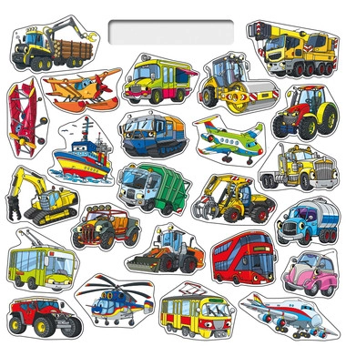 Découvrez le monde des voitures, des trains, des bateaux et d’autres moyens de transport avec un livre de coloriage qui inspire les enfants à créer et à jouer. Grâce aux autocollants, ils peuvent d’abord composer les scènes puis les colorier selon leur imagination. Une activité idéale à la maison comme en voyage.