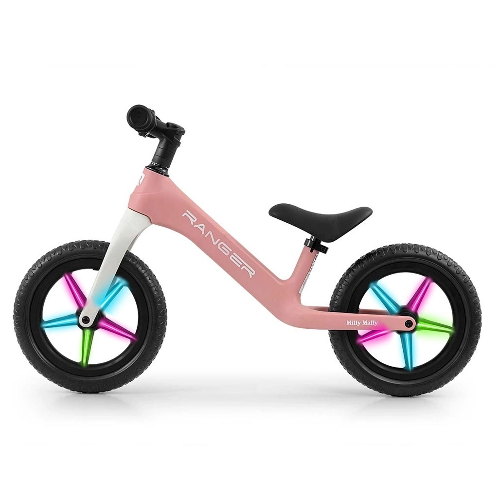 La draisienne légère MILLY MALLY Ranger Flash en couleur rose aide les enfants à développer l’équilibre et la coordination avant de passer au vélo à pédales. Elle offre un cadre composite, des roues EVA 12″ sans entretien et une hauteur de selle réglable pour le confort et l’accompagnement de la croissance de l’enfant. Des guidon et roues sur roulements, des poignées souples antidérapantes et un éclairage LED dans les rayons des jantes augmentent la sécurité et le plaisir de conduite.