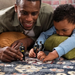 L’emballage contient trois variantes distinctes de Batman qui forment ensemble une collection impressionnante pour le 85e anniversaire du chevalier noir.