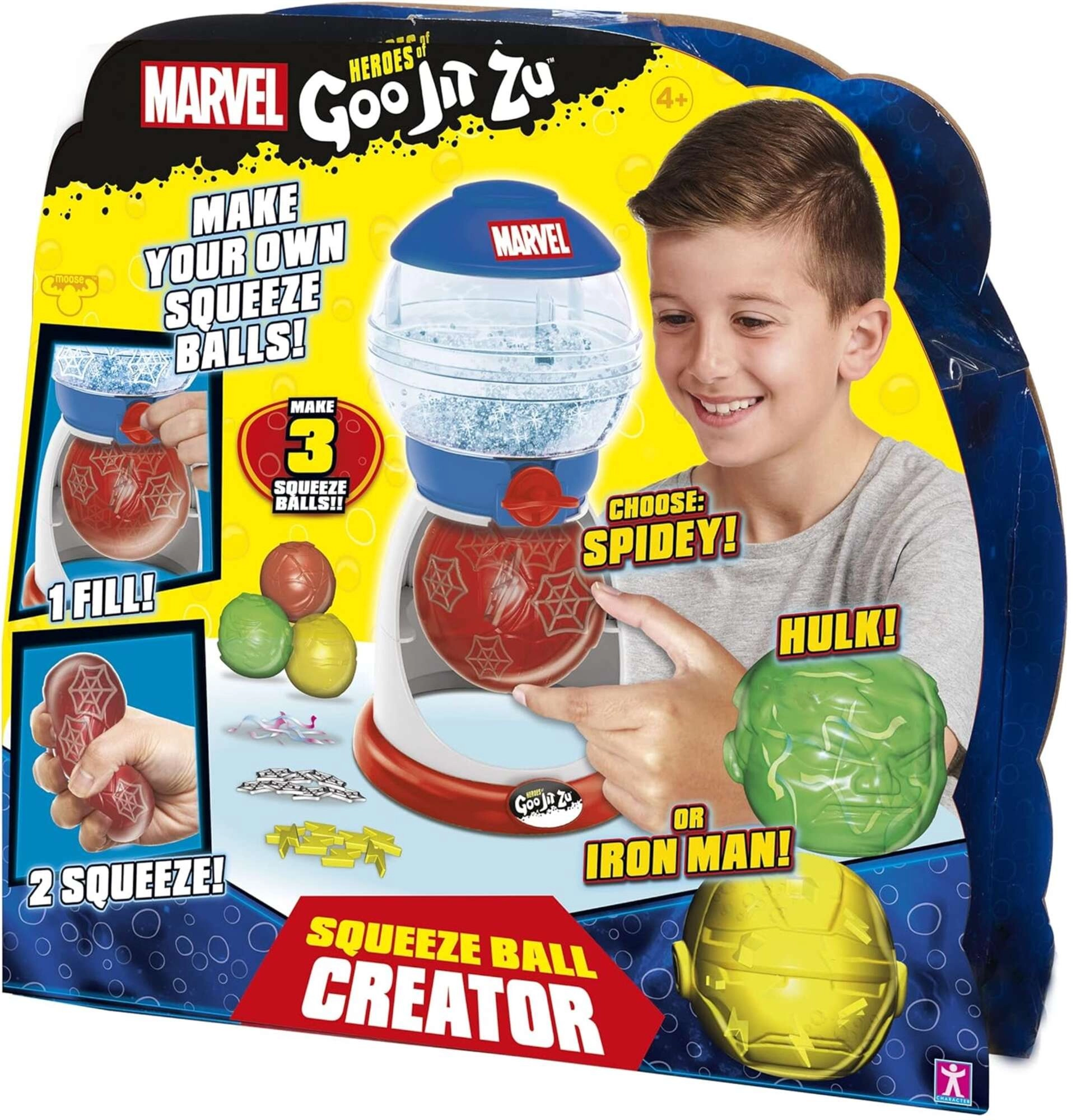 Avec ce kit interactif, les enfants fabriquent des balles antistress uniques pleines de couleurs, de paillettes et de décorations. Le réservoir central transparent permet un remplissage facile, tandis que la molette rouge aide à fermer la balle en toute sécurité. La boîte contient trois balles colorées (rouge, verte, jaune) avec des motifs en relief de super-héros populaires.