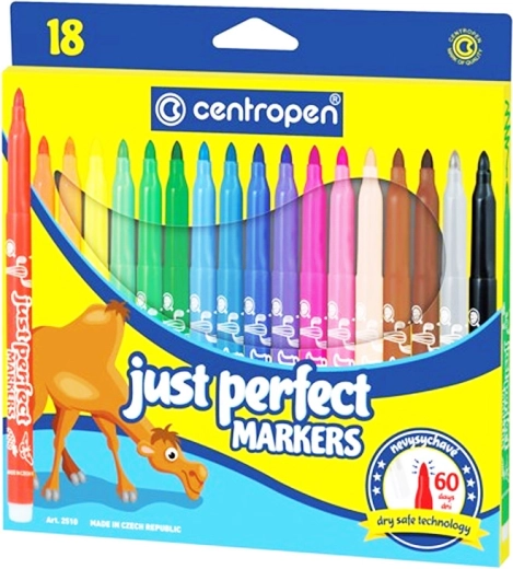 Le set de feutres CENTROPEN Just Perfect est idéal pour les enfants comme pour les adultes qui veulent créer sans souci. Les feutres disposent de pointes de qualité d’un diamètre de 2–3 mm, grâce auxquelles vous coloriez facilement de grandes surfaces tout en dessinant avec précision les détails. L’encre est anti-dessèchement et lavable, ce qui permet d’enlever aisément d’éventuelles taches sur les vêtements.