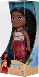 La poupée MOANA inspirée du film Disney MOANA 2 offre aux enfants l’apparence authentique de l’héroïne préférée : de longs cheveux volumineux à coiffer, de grands yeux foncés expressifs et un costume polynésien traditionnel – haut clair avec motifs rouges et jupe rouge à imprimé tropical. Un collier de coquillages souligne son lien avec l’océan.