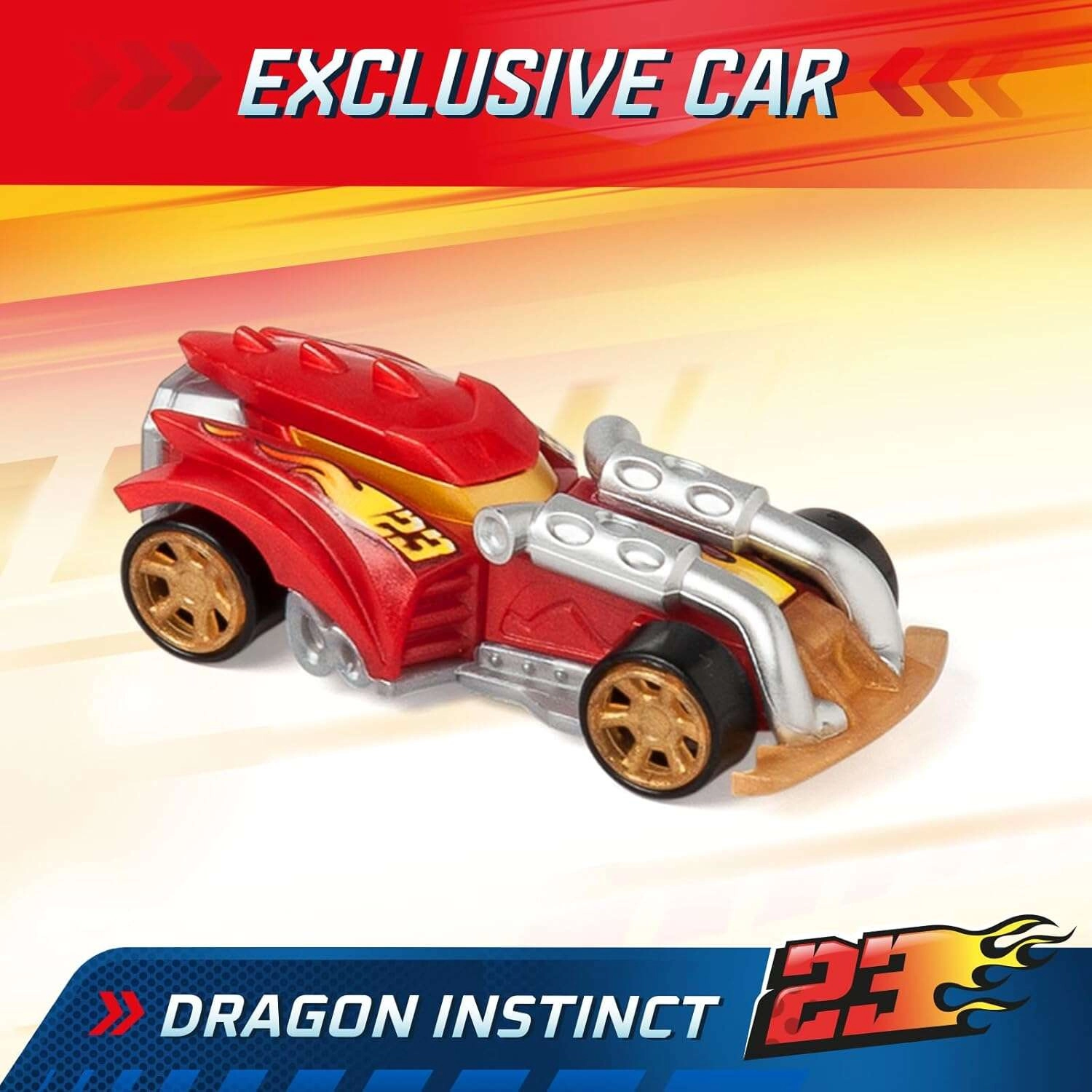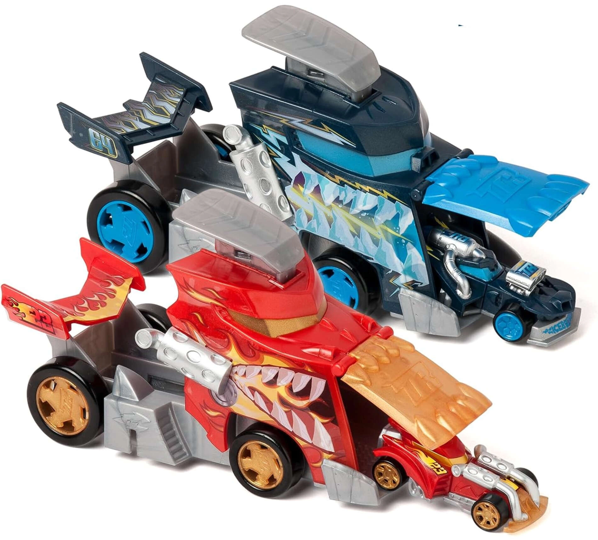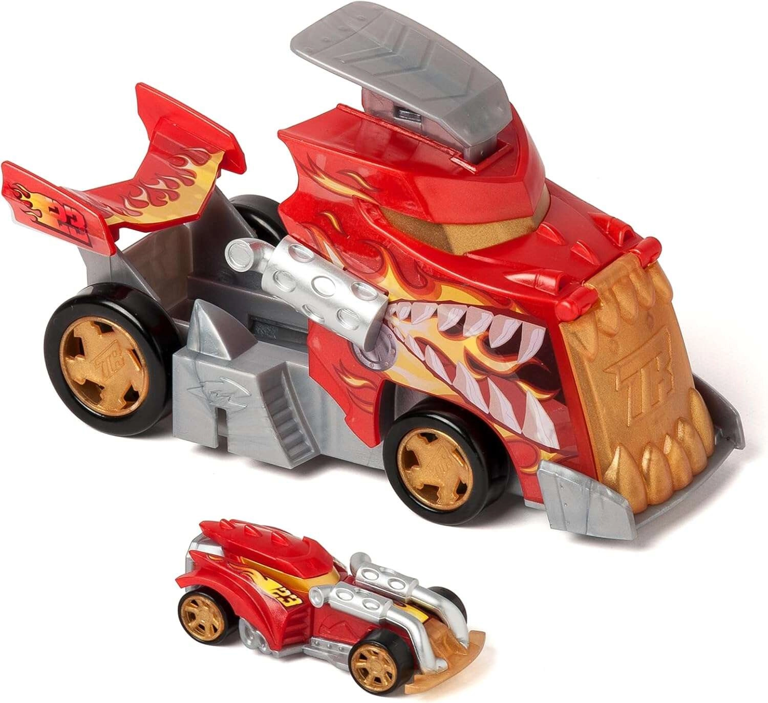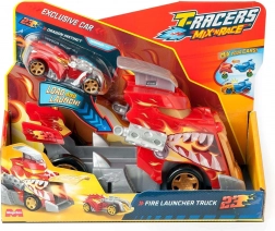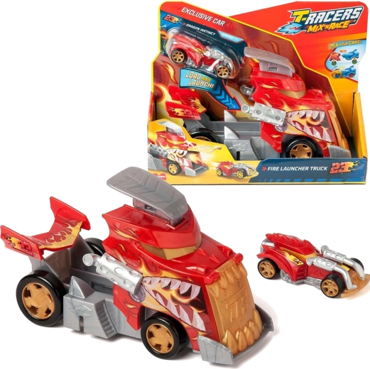 Le set T-Racers Mix ’N Race Fire Launcher Truck apporte aux enfants des courses dynamiques et la liberté de créer. Le camion au style dragon transporte tes voitures et, grâce à sa rampe de lancement intégrée, les propulse à toute vitesse. Il inclut également une voiture de course exclusive dont les pièces peuvent être combinées avec les autres modèles de la gamme Mix ’N Race.