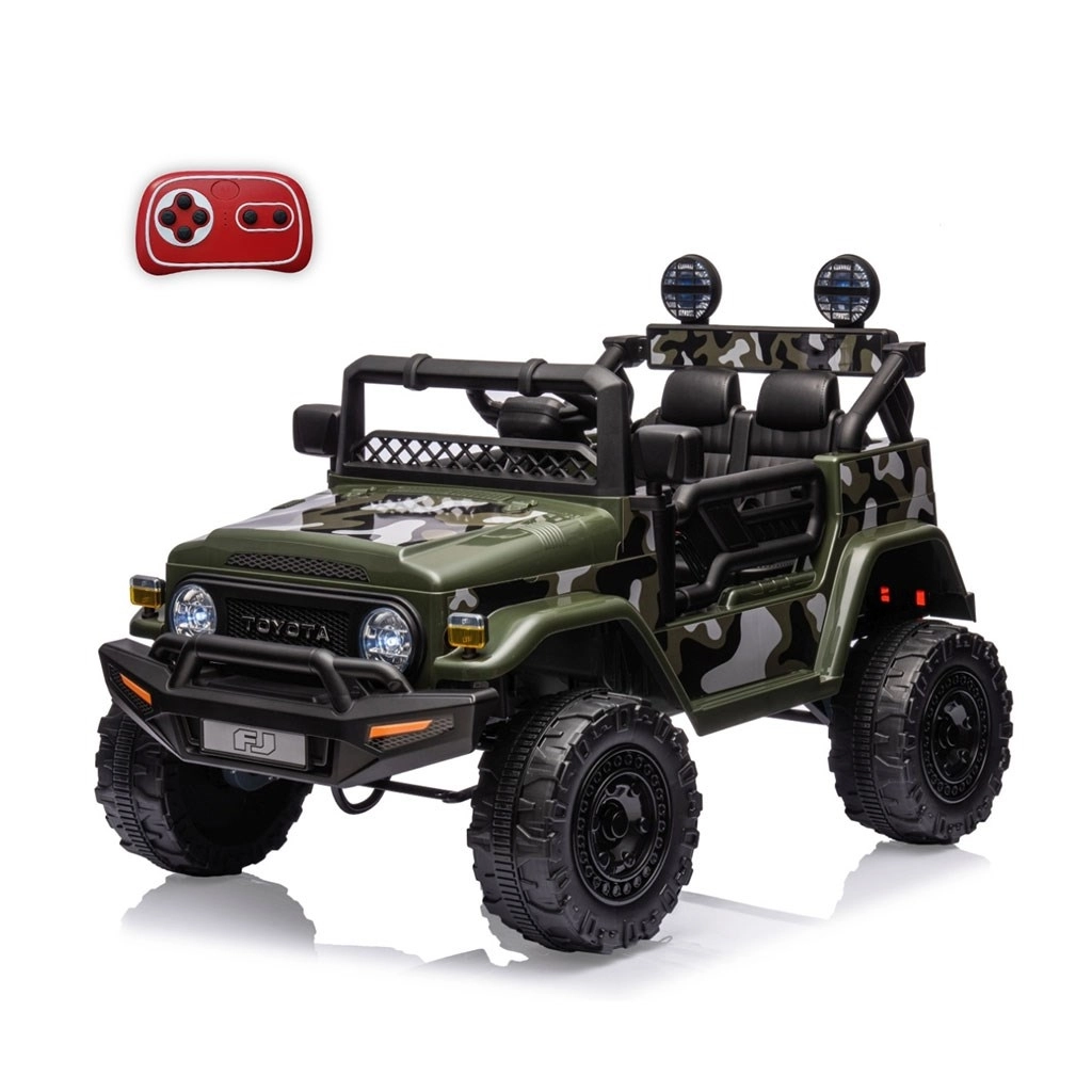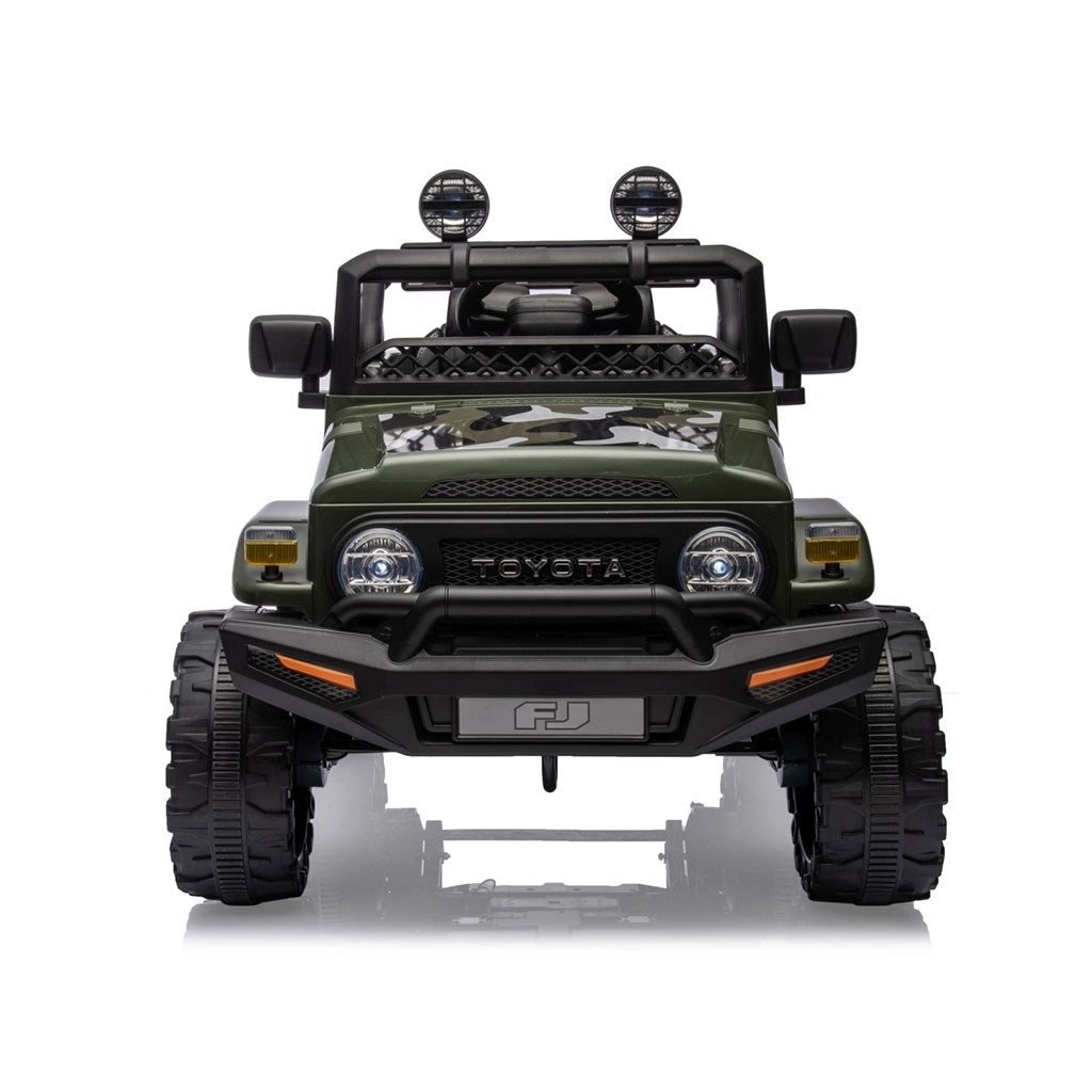 Partez à l’aventure tout-terrain avec la voiture électrique Toyota FJ Cruiser Army. Sa structure robuste en plastique résistant, ses grandes roues et ses détails réalistes garantissent un divertissement idéal et favorisent le développement de la motricité. Grâce au démarrage en douceur, à deux vitesses avant et à la marche arrière, la conduite est confortable et sûre.