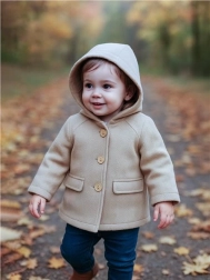 Un manteau pour enfant New Baby UNI avec capuche, stylé et confortable, idéal pour l’automne et l’hiver doux. Il offre une coupe universelle pour filles et garçons, une doublure chaude 100 % coton et une fermeture pratique à boutons. Le tissu plus épais de qualité protège du froid et les boutons en bois apportent une touche élégante.