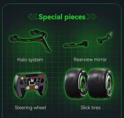 - Échelle 1:24 avec des détails réalistes : Halo, rétroviseurs, volant, pneus Pirelli.