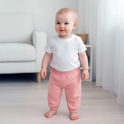 Cet ensemble pour enfants NEW BABY KINDERGARTEN en rose est un excellent choix pour un usage quotidien. Il combine un t-shirt en coton doux sans fermeture avec un col finement bordé et un pantalon en mousseline uni au look moderne. Grâce à sa matière légère et respirante, les enfants se sentiront à l’aise toute la journée.