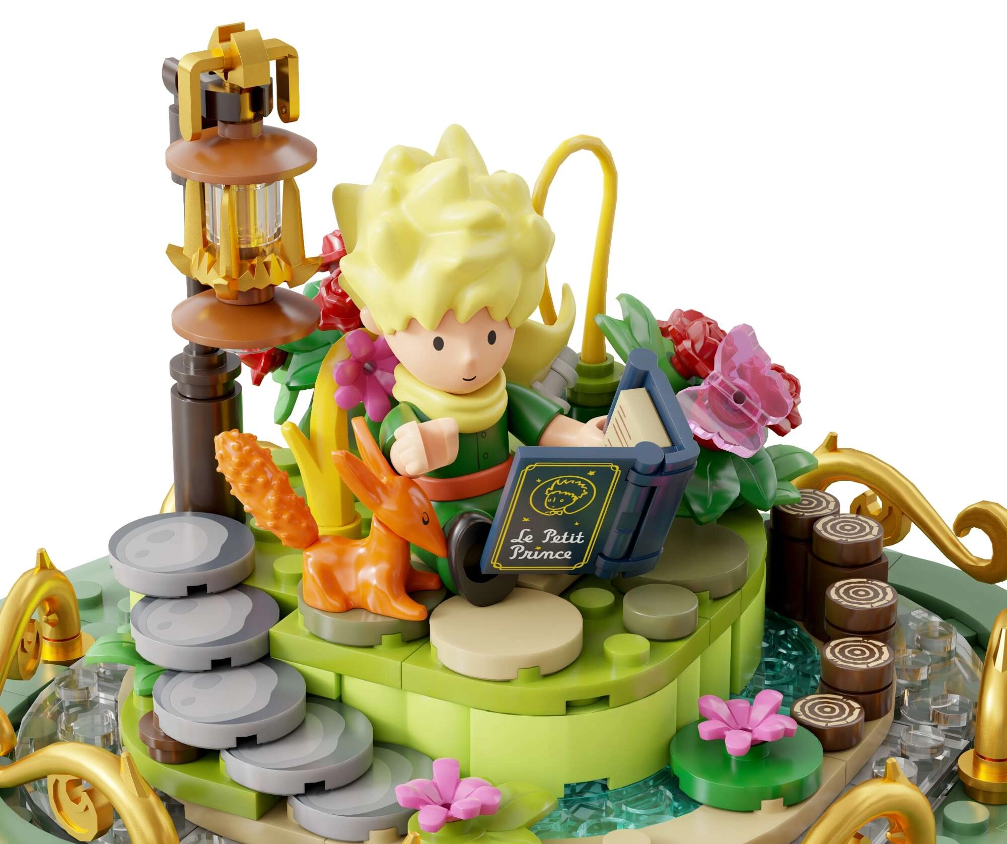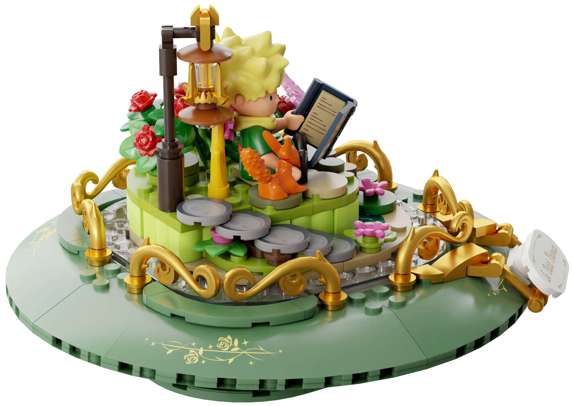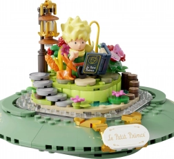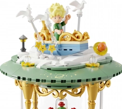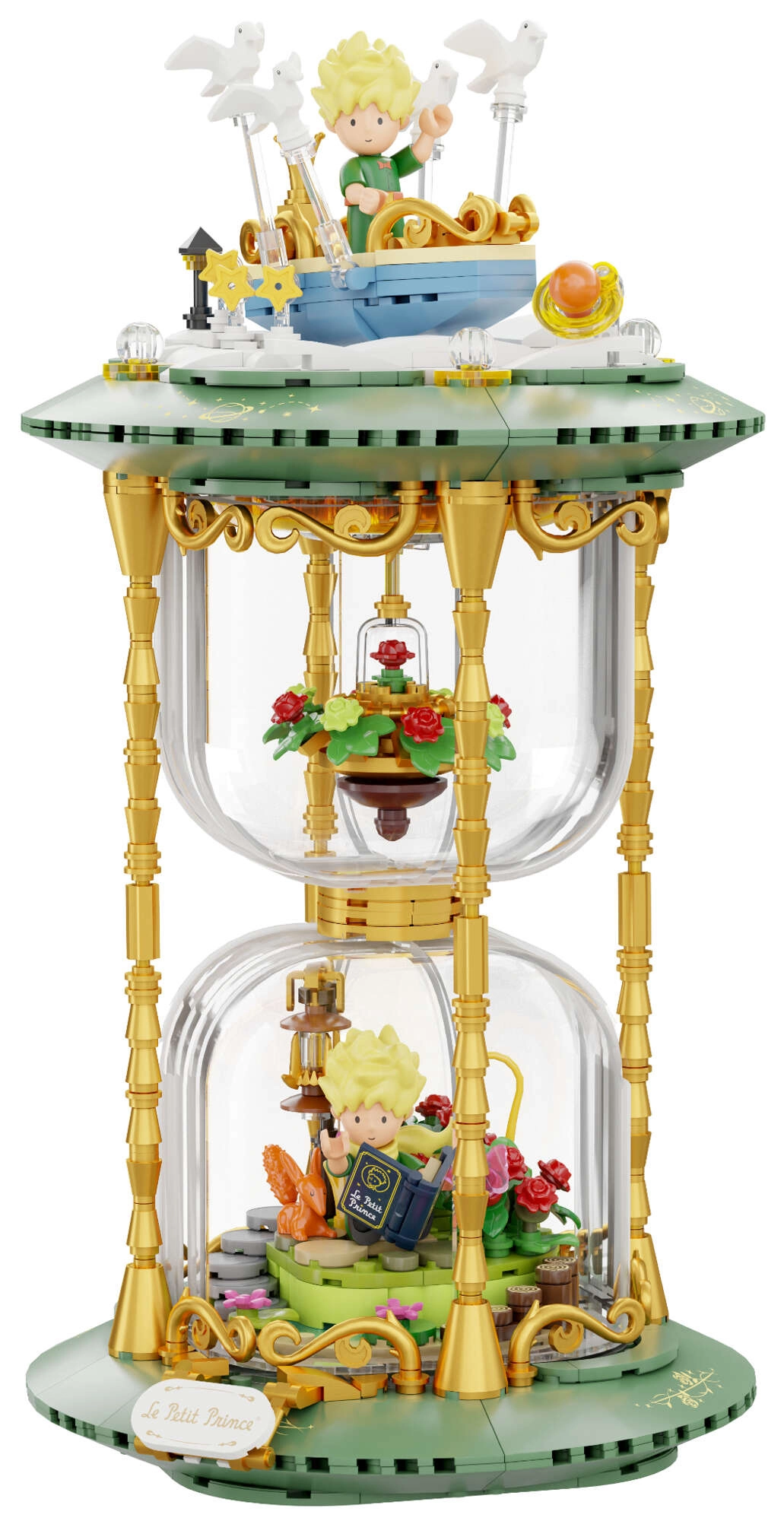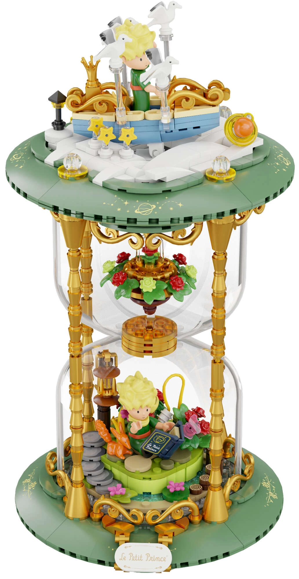 Ce set d’exposition en forme de sablier élégant marie la poésie d’une œuvre intemporelle à un design moderne. Des socles verts, des colonnes dorées et des chambres transparentes avec mini-scènes créent un diorama spectaculaire – le Petit Prince, le renard, la rose sous cloche et le ciel étoilé. Grâce à l’ajustement précis des briques et aux motifs imprimés, le modèle conserve une apparence impeccable pendant de nombreuses années.