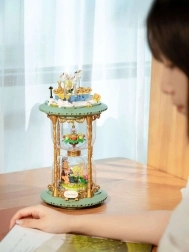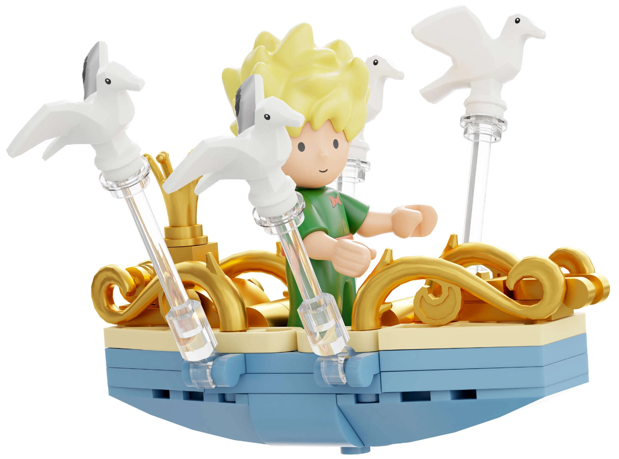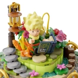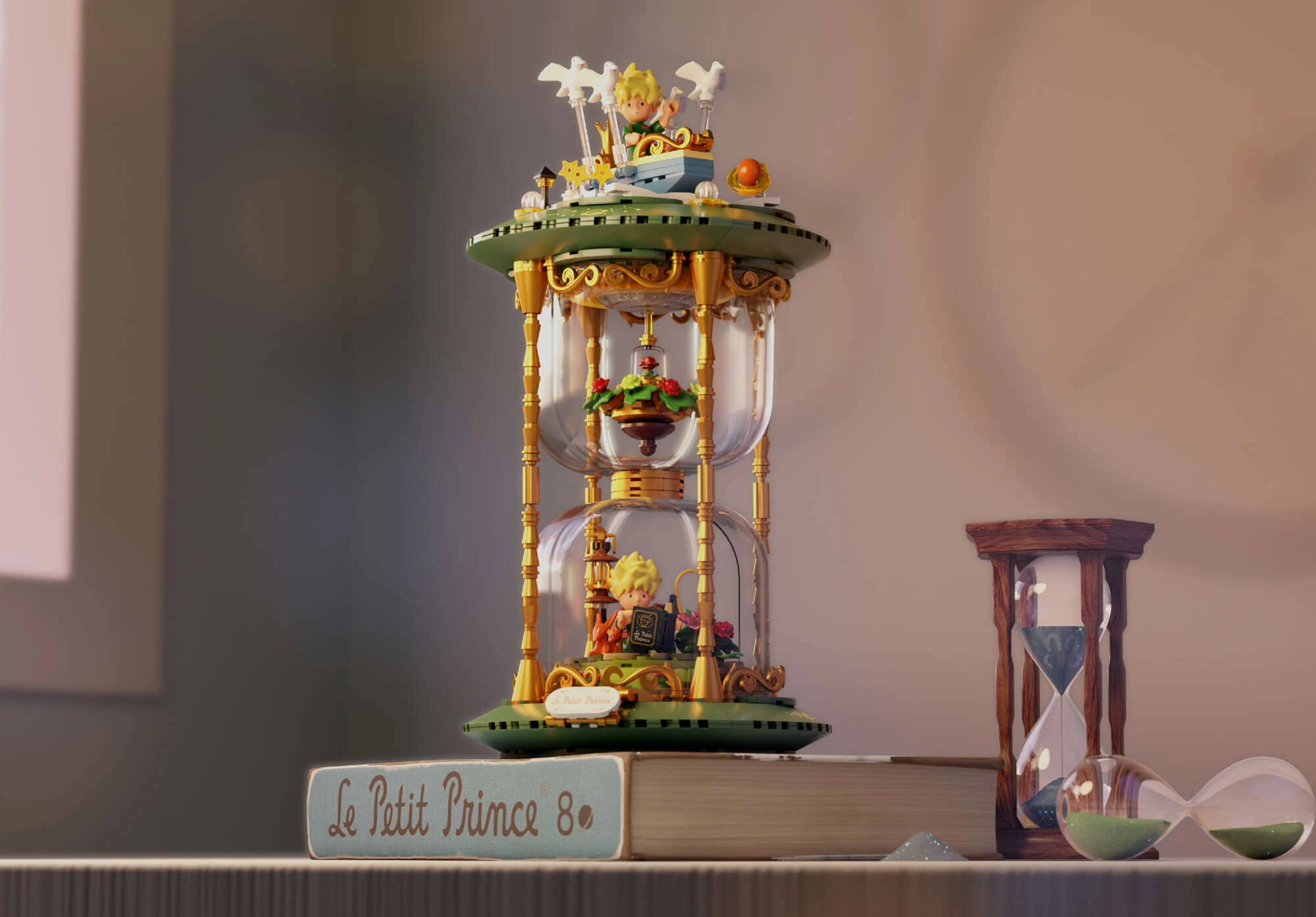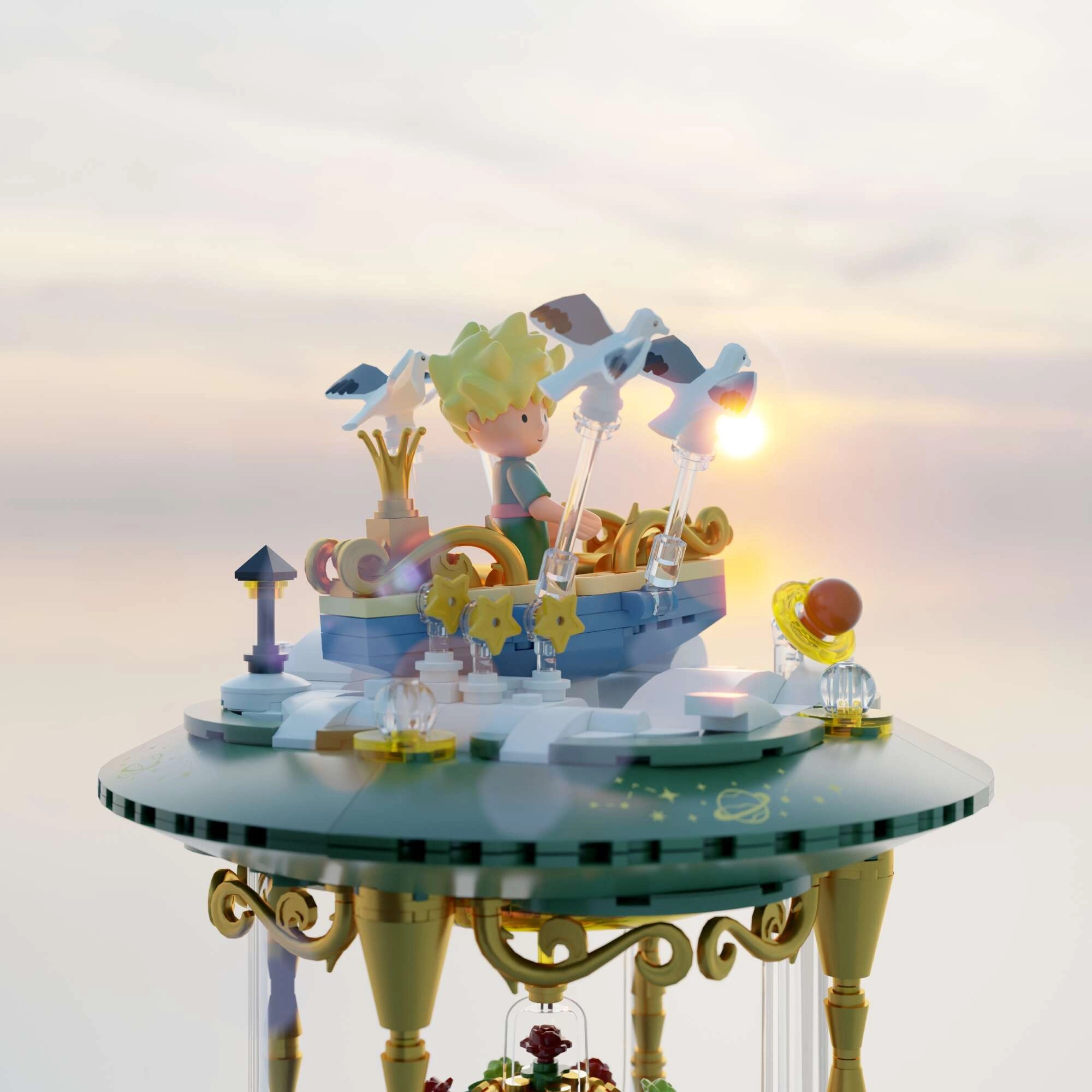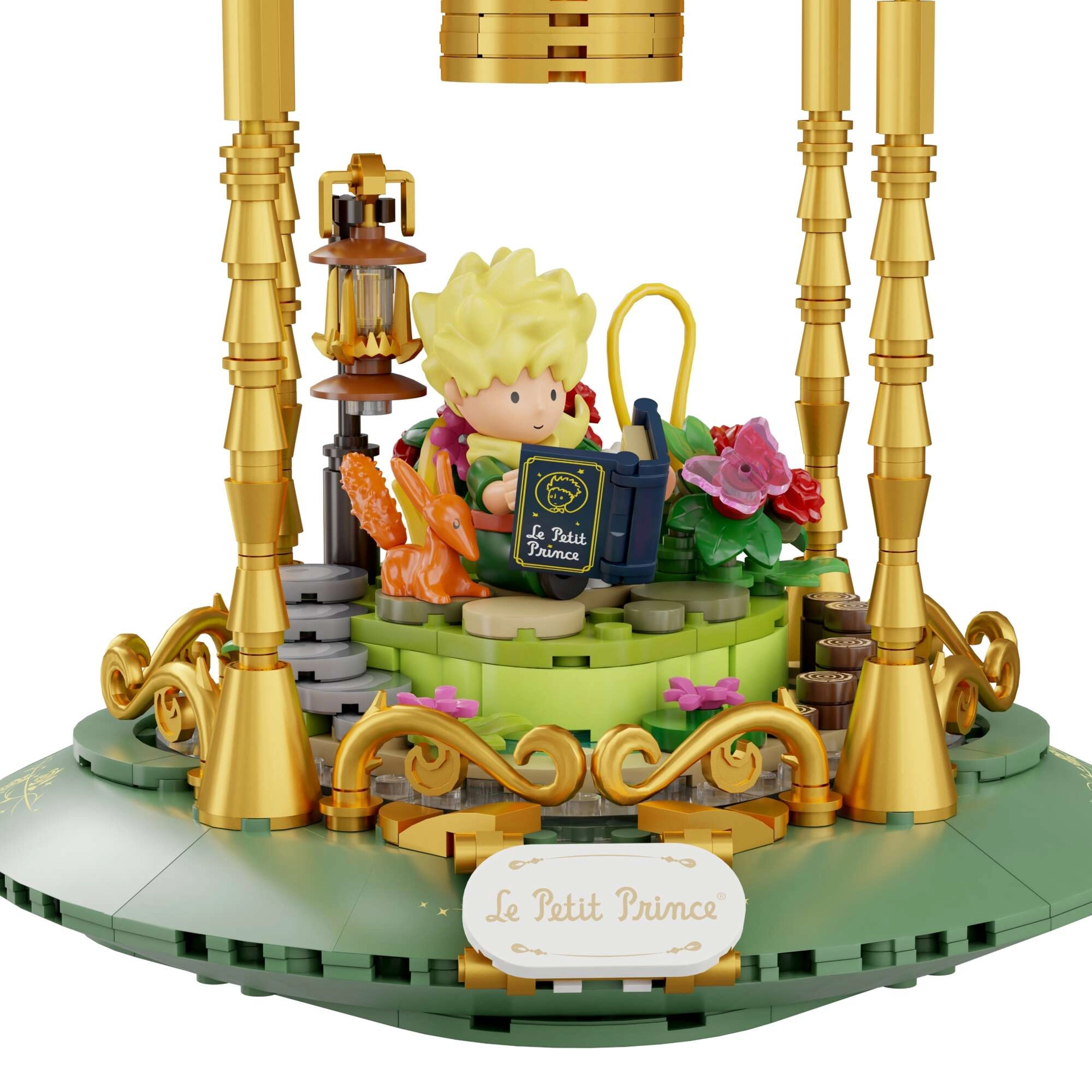 Ce set d’exposition en forme de sablier élégant marie la poésie d’une œuvre intemporelle à un design moderne. Des socles verts, des colonnes dorées et des chambres transparentes avec mini-scènes créent un diorama spectaculaire – le Petit Prince, le renard, la rose sous cloche et le ciel étoilé. Grâce à l’ajustement précis des briques et aux motifs imprimés, le modèle conserve une apparence impeccable pendant de nombreuses années.