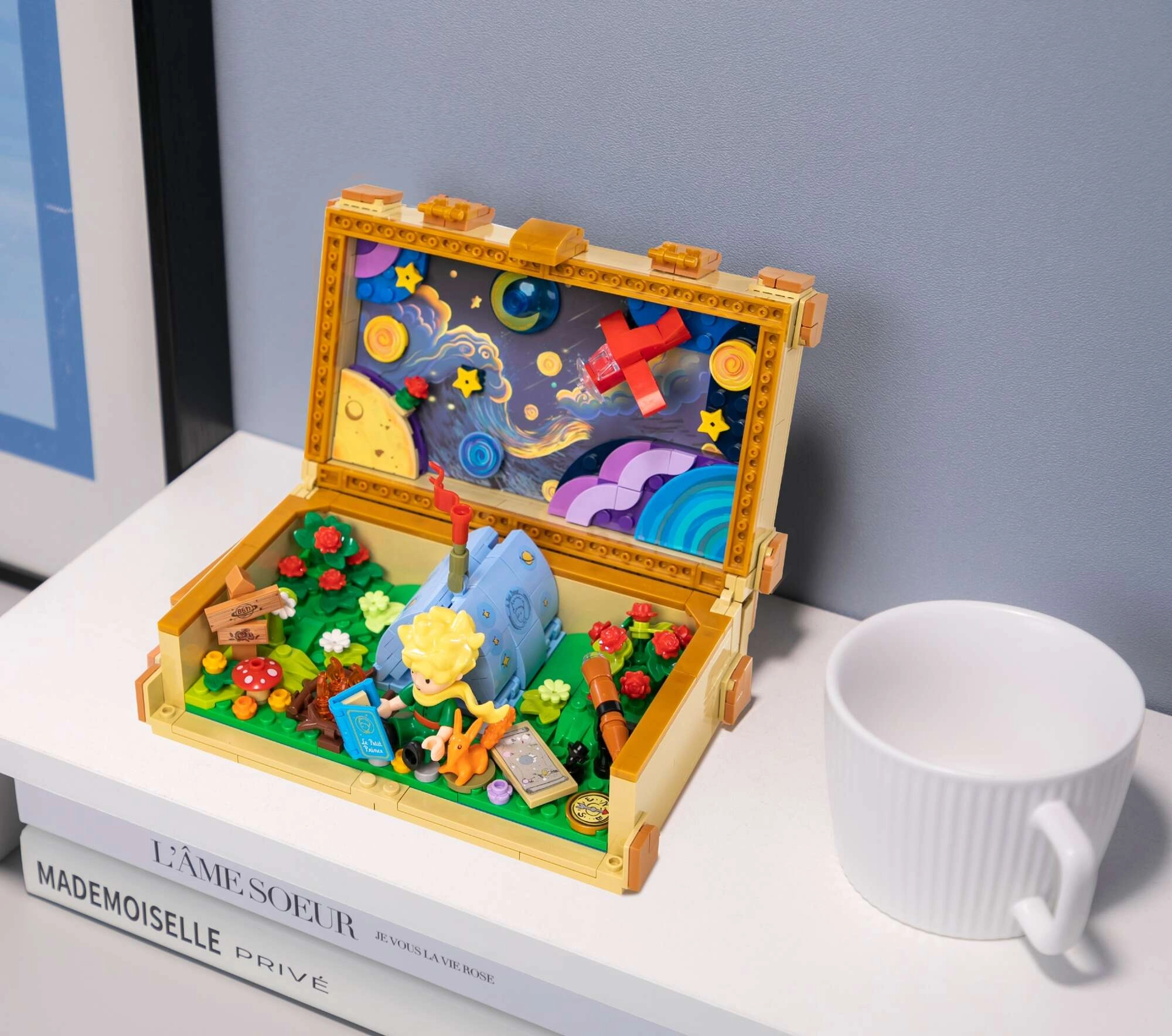 Ce set de construction design Pantasy marie un classique littéraire intemporel à une construction moderne. La valisette ouvrante cache une scène pittoresque avec étoiles, planètes et petit avion rouge, complétée par un foyer, une rose, un télescope, un renard et une figurine lisant un livre. Grâce à l’ajustement précis des pièces, la construction est fluide et le modèle fini fonctionne comme un diorama décoratif.