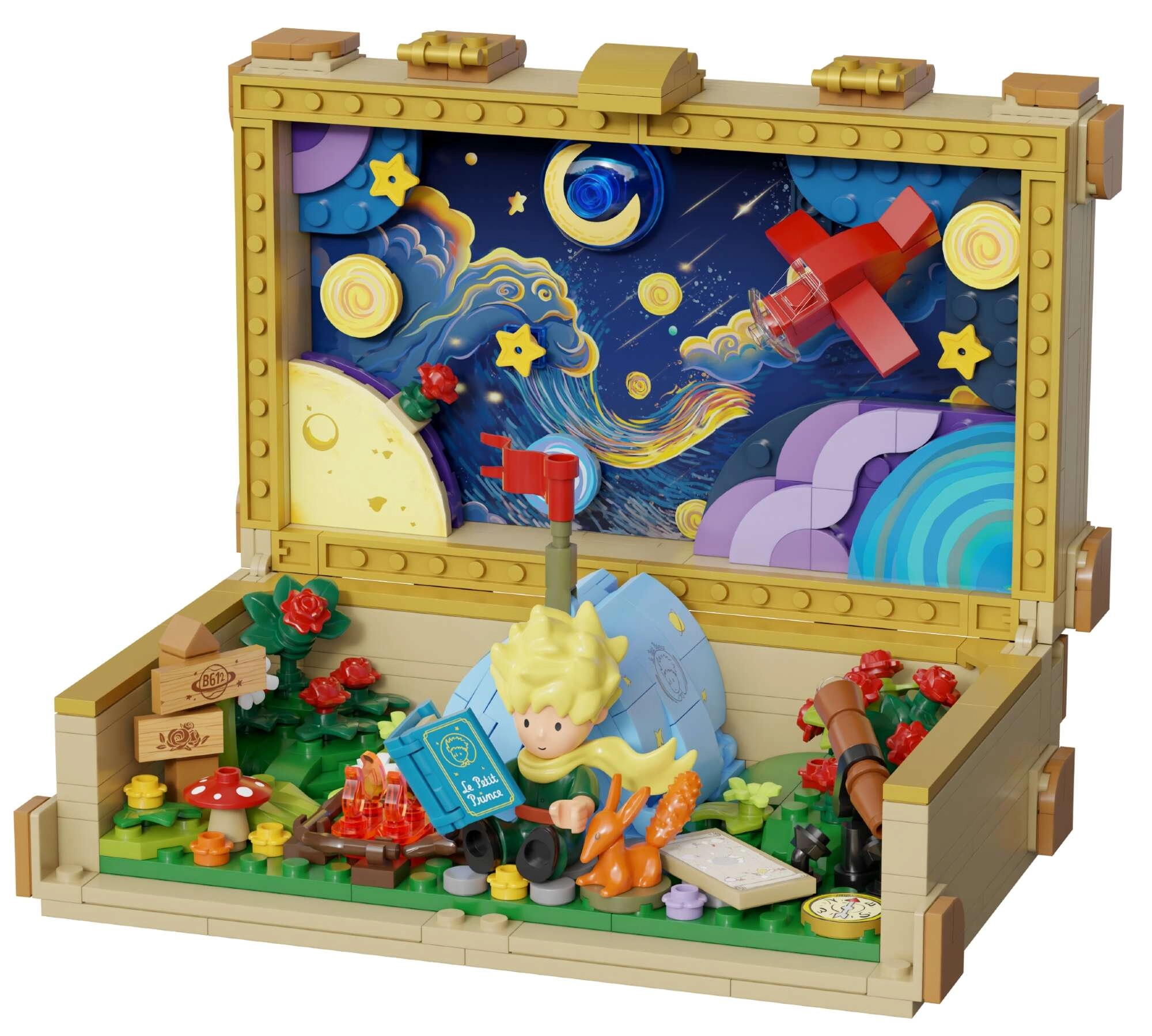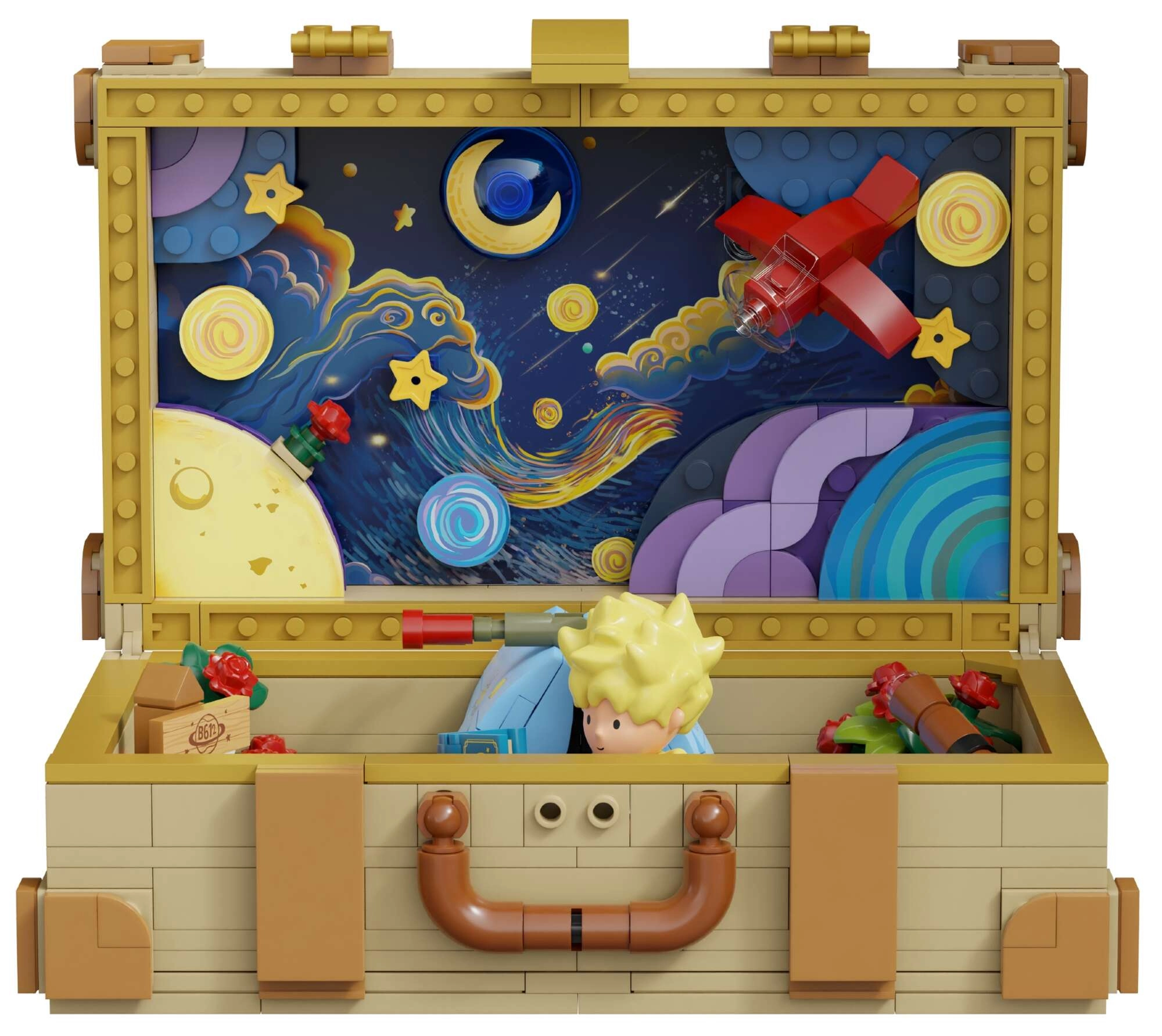 À l’intérieur, retrouvez la figurine du PETIT PRINCE, le renard, la rose, un foyer, un télescope et un petit avion rouge – idéal pour inventer vos propres histoires.