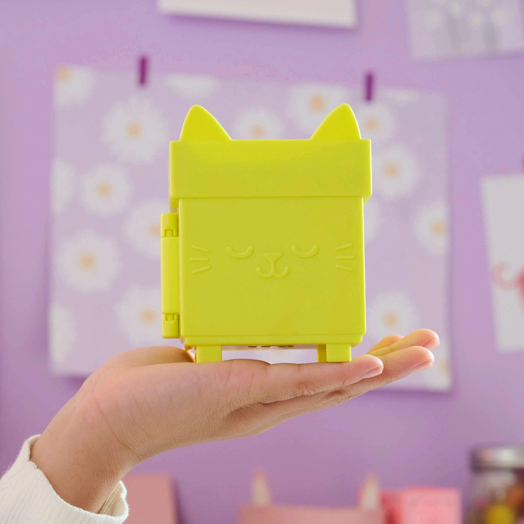 En ouvrant l’étui jaune en forme de chat, une scène musicale colorée apparaît, où DJ Catnip peut briller.