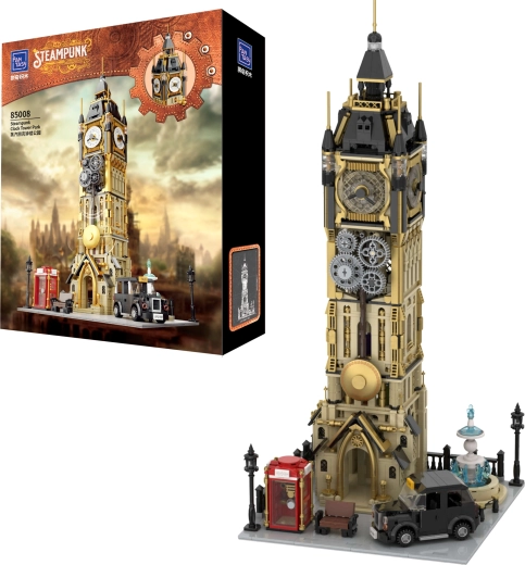 Ce modèle officiellement approuvé de la série Steampunk transporte les constructeurs dans un univers vintage industriel. Les tons chauds laiton, bruns et métal foncé créent une atmosphère authentique de l’ère de la vapeur, tandis que la tour horloge centrale, située dans un parc pittoresque, deviendra la pièce maîtresse de toute collection. La construction met l’accent sur la précision mécanique et le sens du détail visuel, idéale aussi bien pour l’exposition que pour le jeu créatif.