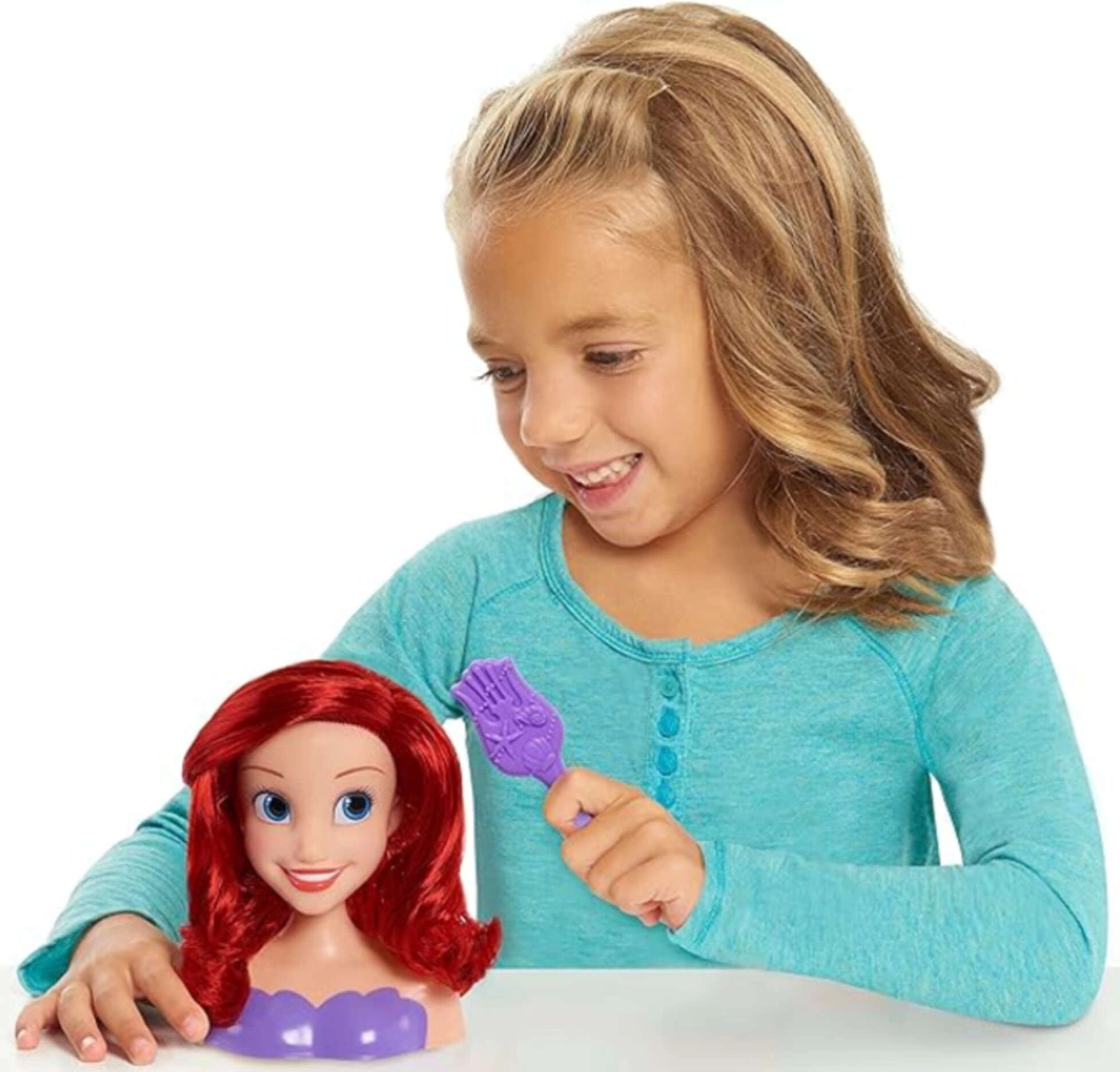 Découvrez la magie du coiffage avec la tête à styliser Ariel de l’incontournable La Petite Sirène. Les longs cheveux lisses sont idéals pour le brossage, les tresses et les coiffures imaginatives. Grâce à la qualité agréable des cheveux, la mise en beauté est facile et amusante.