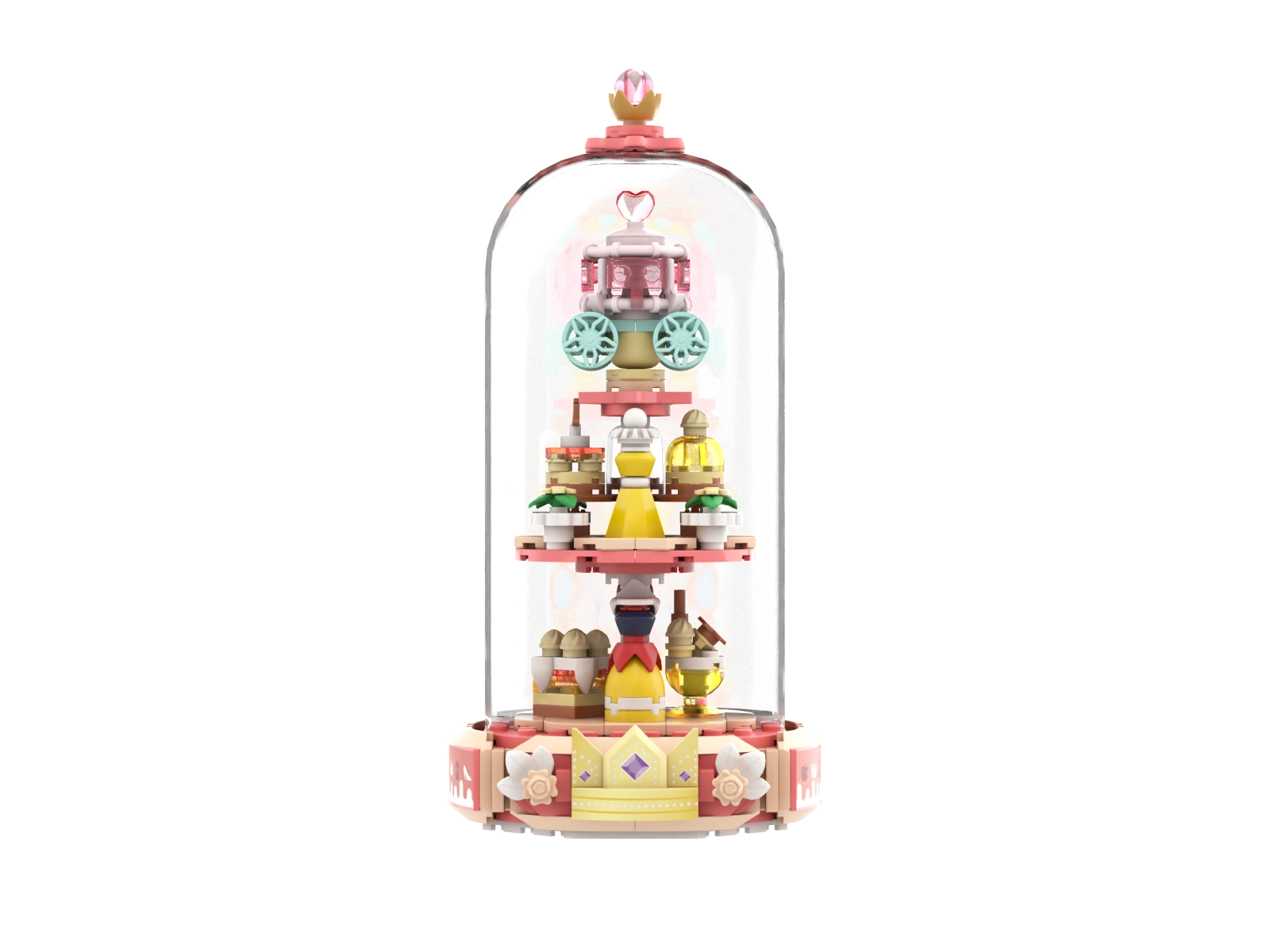 Le set Dreamy Princess est conçu pour les amoureux de contes, les collectionneurs et les enfants. Les trois niveaux dissimulés sous un dôme transparent évoquent un élégant présentoir de bal royal – avec des ornements subtils, des couleurs pastel et des motifs de couronne. Une fois terminé, le modèle est une superbe décoration d’intérieur et une pièce de collection stylée.