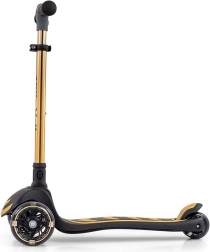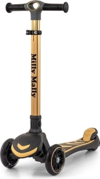 La trottinette MILLY MALLY Boogie Golden est un excellent choix pour les jeunes riders dès 3 ans. Elle combine aluminium et plastique renforcé pour une longue durée de vie et un faible poids, tandis que la large base stable et le plateau antidérapant apportent de l’assurance en roulant. Les deux roues avant LED et la double roue arrière en PU assurent une conduite silencieuse, fluide et ludique, même à la tombée de la nuit.