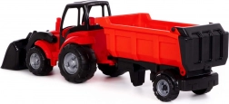 Découvrez un jouet polyvalent pour les petits bâtisseurs – un tracteur avec chargeur frontal et remorque basculante. Grâce à sa conception robuste et à ses grandes roues, il roule aussi bien sur le tapis que dans le sable. La pelle fonctionnelle ramasse facilement le sable ou les blocs, et la remorque à benne basculante assure un déchargement rapide de la cargaison.