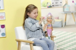 Découvrez les secrets du monde sous-marin avec la poupée BABY born sirène. Dès qu’elle est immergée dans l’eau, elle nage gracieusement et bouge sa nageoire colorée. Son atout magique est le changement de couleur : dans l’eau froide, le rose devient turquoise et le turquoise devient bleu – chaque bain devient ainsi une expérience magique.