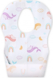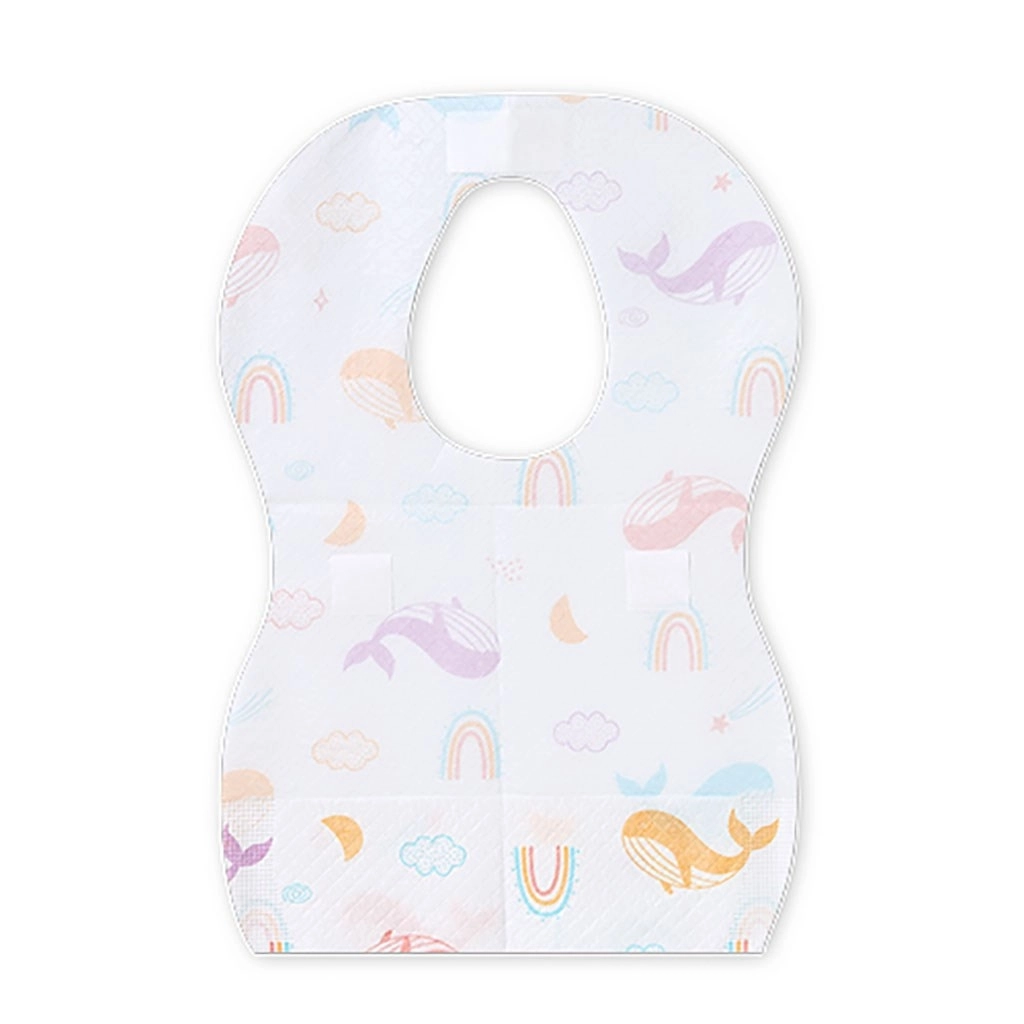 La structure multicouche avec textile non tissé absorbant et support imperméable protège les vêtements pendant les repas.