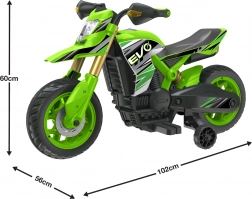 La moto électrique pour enfants EVO Venom au style moderne offre un divertissement sécurisé pour de jeunes pilotes. Grâce à son alimentation 6 V, à jusqu’à 60 minutes de conduite, à une vitesse maximale de 3 km/h et à des effets lumineux, elle procure une excellente expérience de conduite. Sa construction stable, ses repose-pieds ergonomiques et ses commandes intuitives garantissent confort et sécurité, à la maison comme en extérieur.