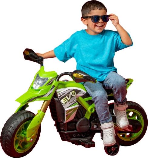 Découvrez le design sportif et les détails réalistes de la moto EVO Venom qui séduiront enfants et parents. Son style inspiré des vraies motos, un phare réaliste et une conception robuste en plastique renforcent le sentiment de maîtrise. La conduite est agrémentée de feux qui s’allument en roulant et d’une commande avant simple via un bouton sur le guidon.