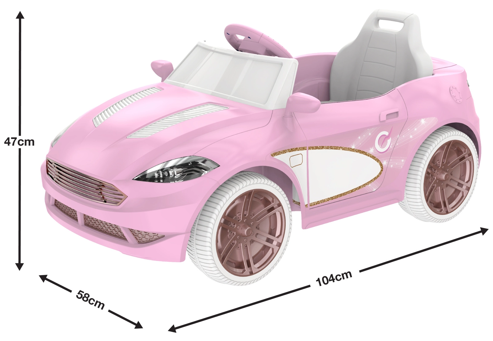 La voiture électrique rose EVO Dream Coupe associe un design élégant à une conduite sûre et ludique. Grâce aux effets lumineux, aux sons du moteur et au klaxon et à des détails réalistes, les enfants se sentent comme de vrais conducteurs. Le cockpit ergonomique et le pilotage intuitif via pédale facilitent les premiers trajets.