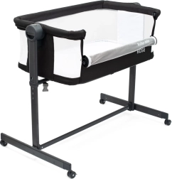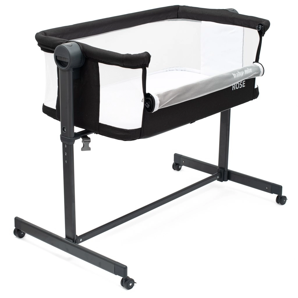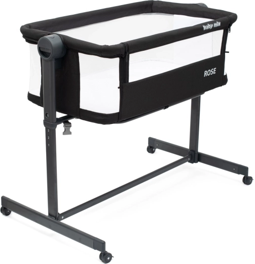 Lit d’appoint pratique et sûr Baby Mix Rose en élégant coloris noir, assurant un sommeil paisible pour le bébé et les parents. Il propose 5 niveaux de hauteur (68–80 cm) pour un alignement parfait avec le lit des parents, des roulettes silencieuses avec frein pour des déplacements faciles et un matelas confortable inclus. Grâce aux fermetures éclair placées à l’extérieur, l’accès est facile, tandis que la structure en acier robuste et le polyester 300D résistant apportent une grande stabilité.